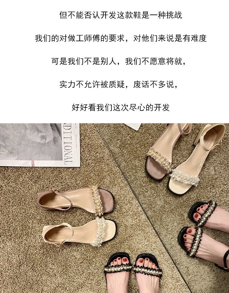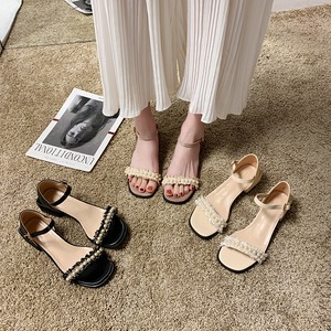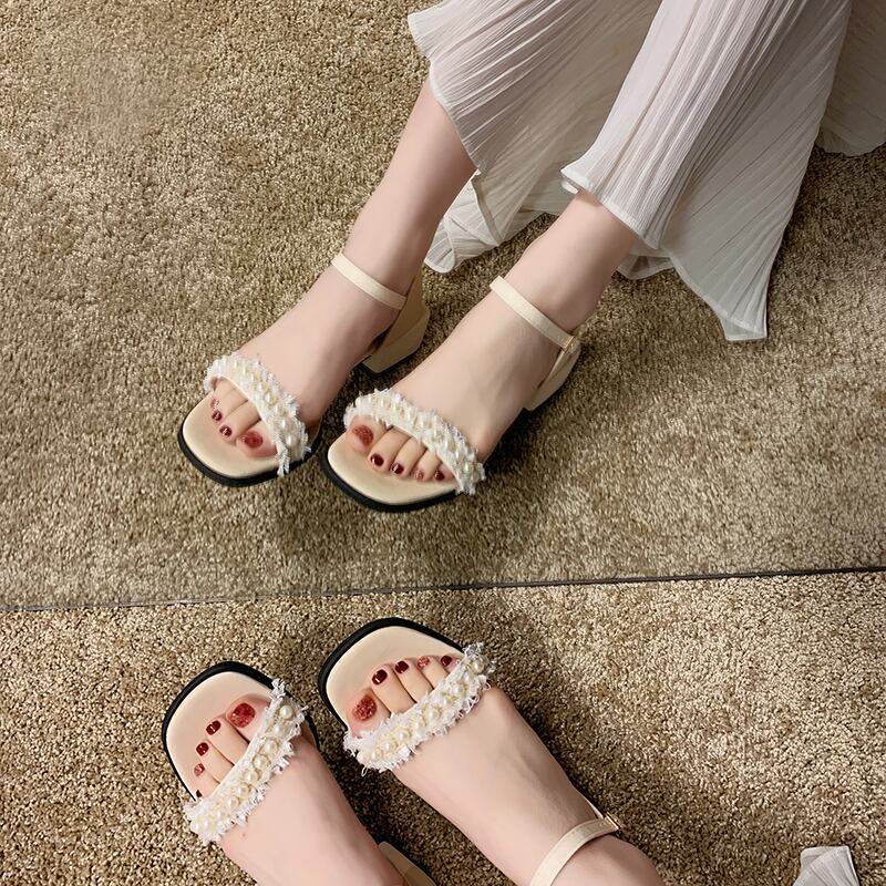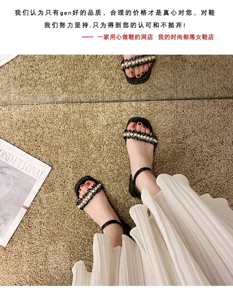 サンダル女子学生2020年夏のレディースシューズすべて一致する新しいミディアムヒールの厚いヒールと単語のバックルパールハイヒールの女性 部族の婦人靴7047596