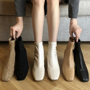 ブーツ2019新しい秋厚いヒールのショートブーツins薄い靴純赤いマーティンブーツ野生のハイヒールの女性の春と秋のシングルブーツ 部族の婦人靴0550628