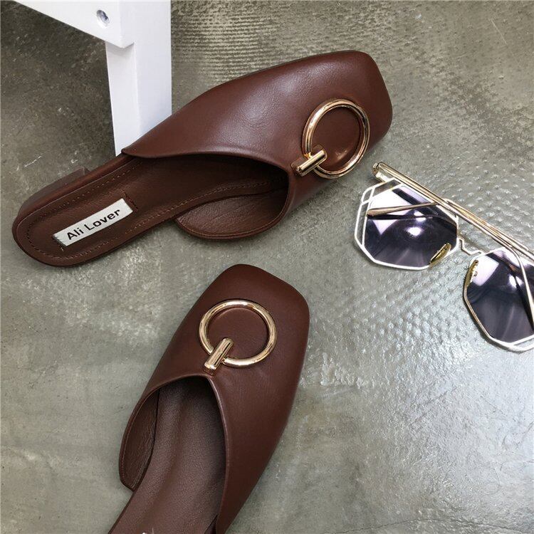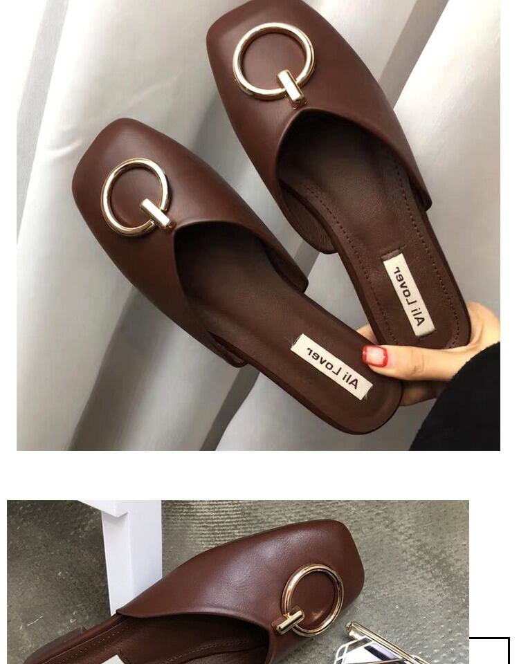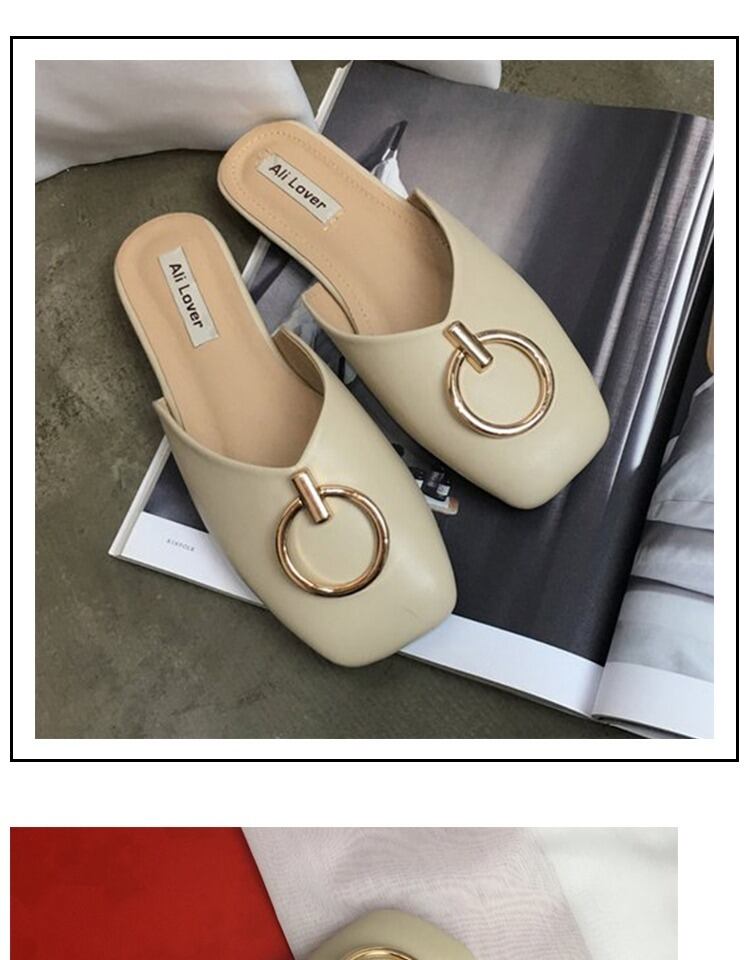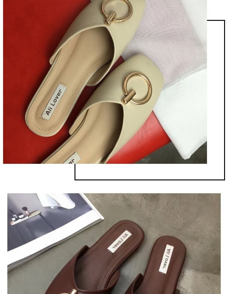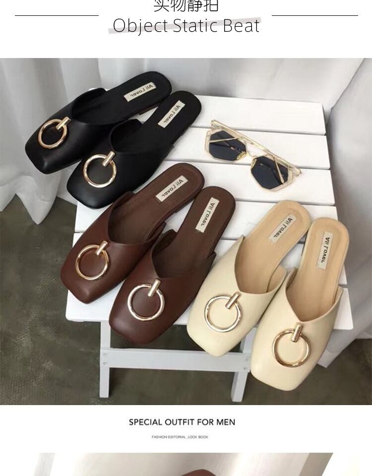 包頭ハーフスリッパ女性2020春の新しいファッション野生のフラットスクエアヘッドメタル怠惰なラバサンダルとスリッパ 部族の婦人靴4477386