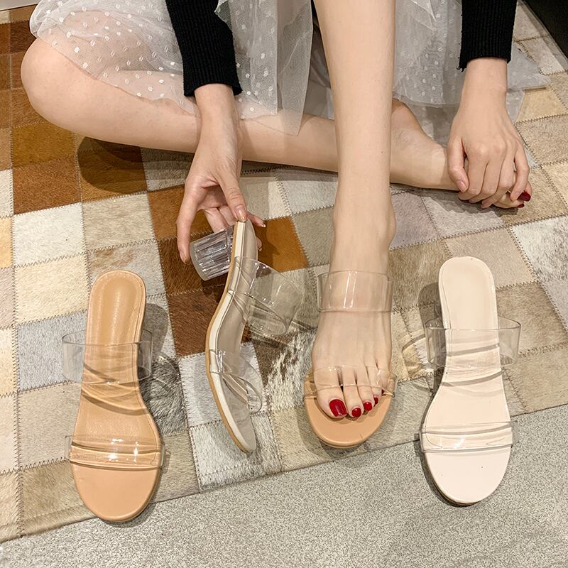 厚いヒールスリッパレディースins着用潮2020新しい夏セクシーワイルドファッション透明ベルトカジュアルサンダル 部族の婦人靴5940300