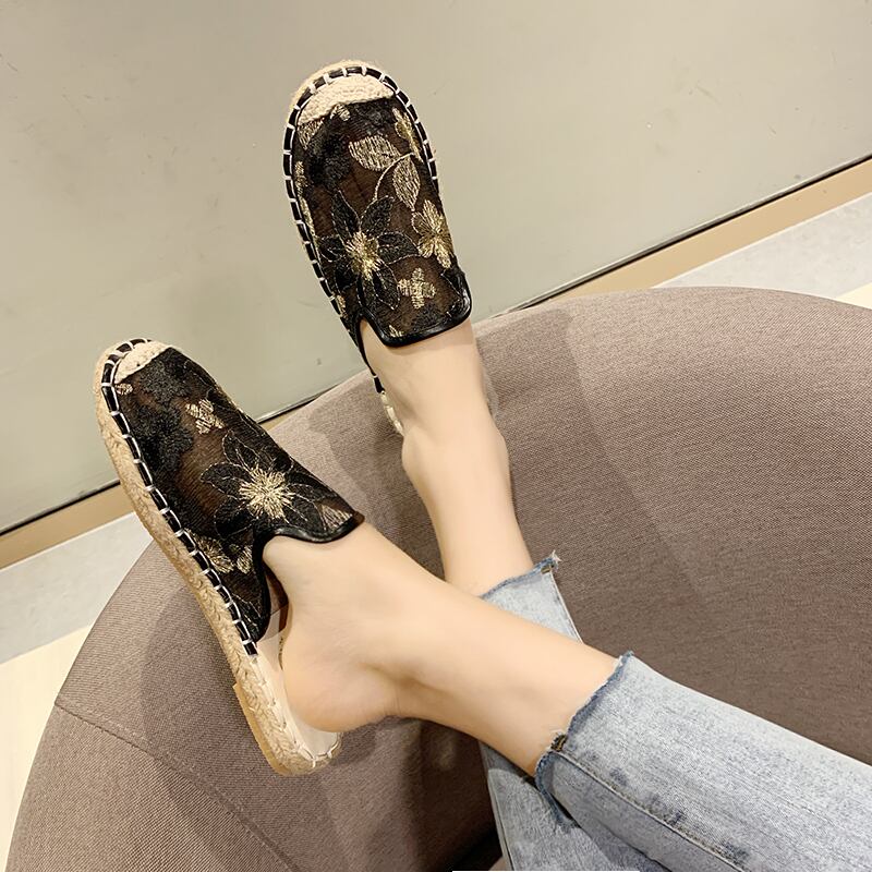 包頭ハーフスリッパ女性は2020年春と夏の新しい快適なレジャーネット赤いフラットボトム漁師の靴を着用します 部族の婦人靴0738653