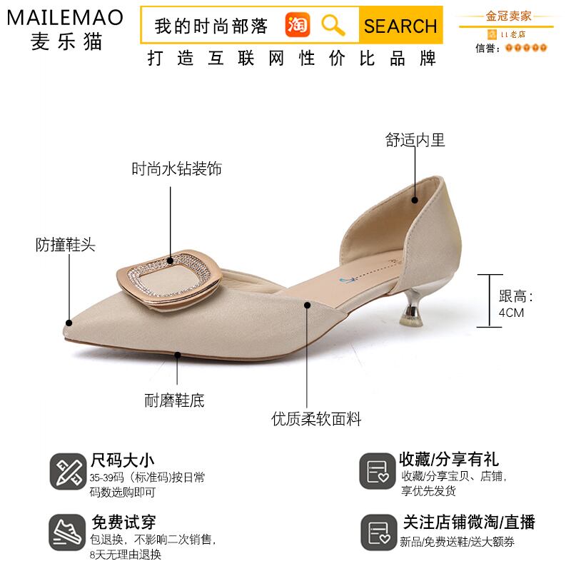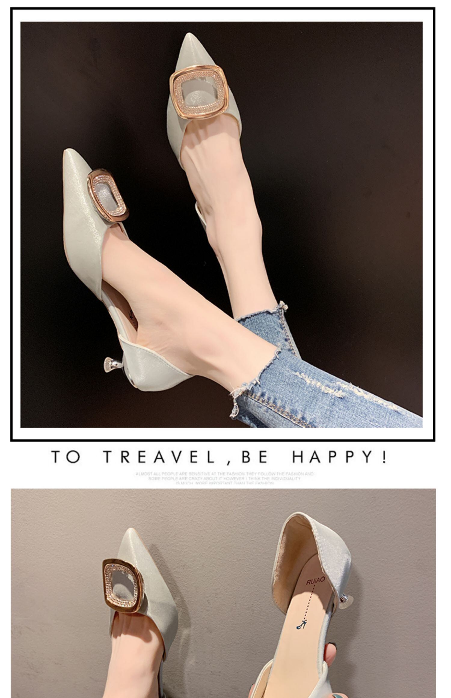 先のとがった単一の靴女性2020春新しいinsファッションネット赤い野生浅い口ハイヒール女性の潮 部族の婦人靴1093727