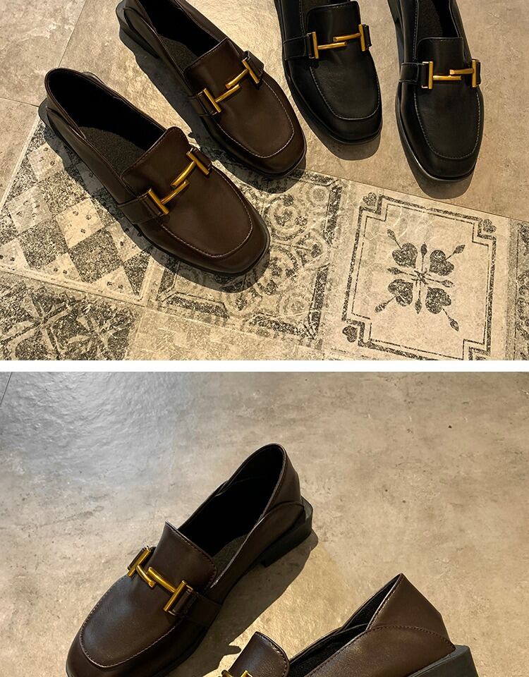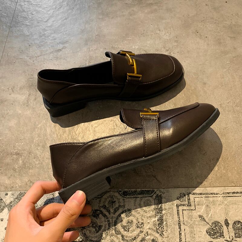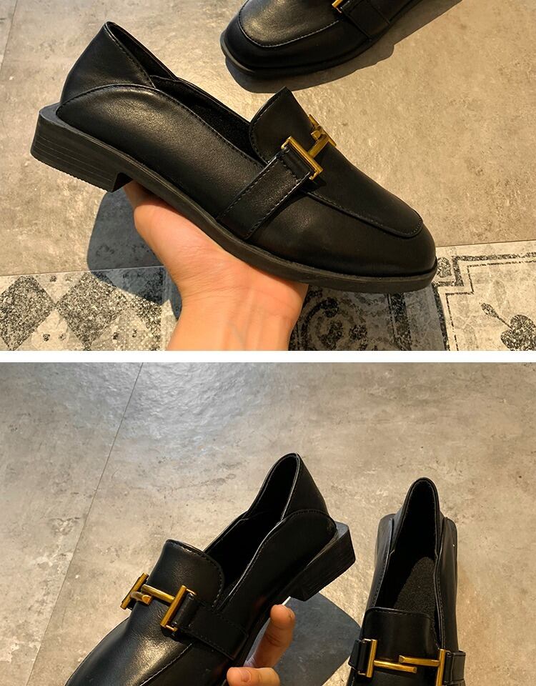 2019秋の女性の小さな革の靴の女性のレトロな学生版の野生の四角い頭の1つのペダルと黒の厚いヒール 部族の婦人靴0749318