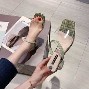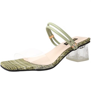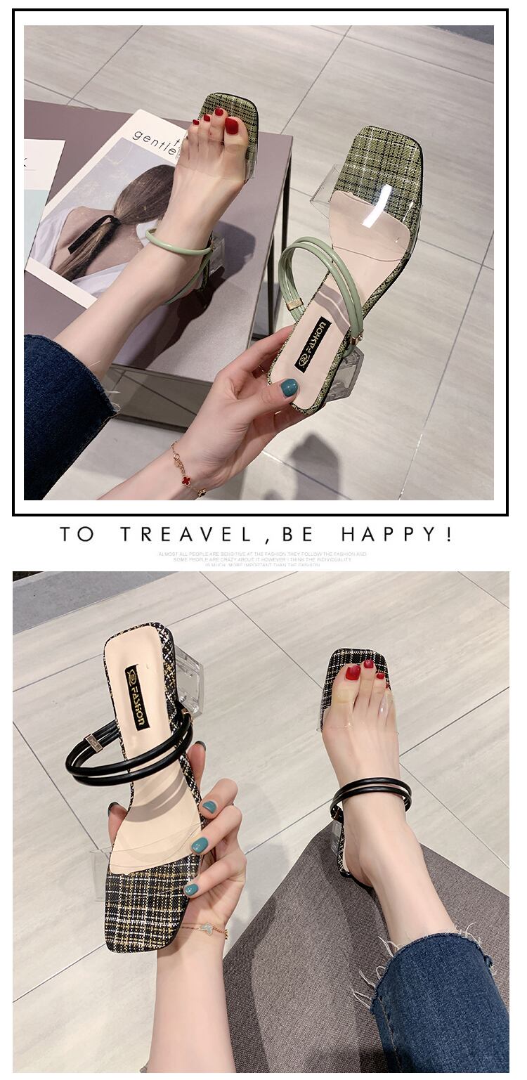 女性の妖精の風の2020年の夏のサンダルの新しい野生のinsの潮は2つのファッションの厚いヒールのサンダルを着て夏に透明 部族の婦人靴5509528