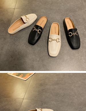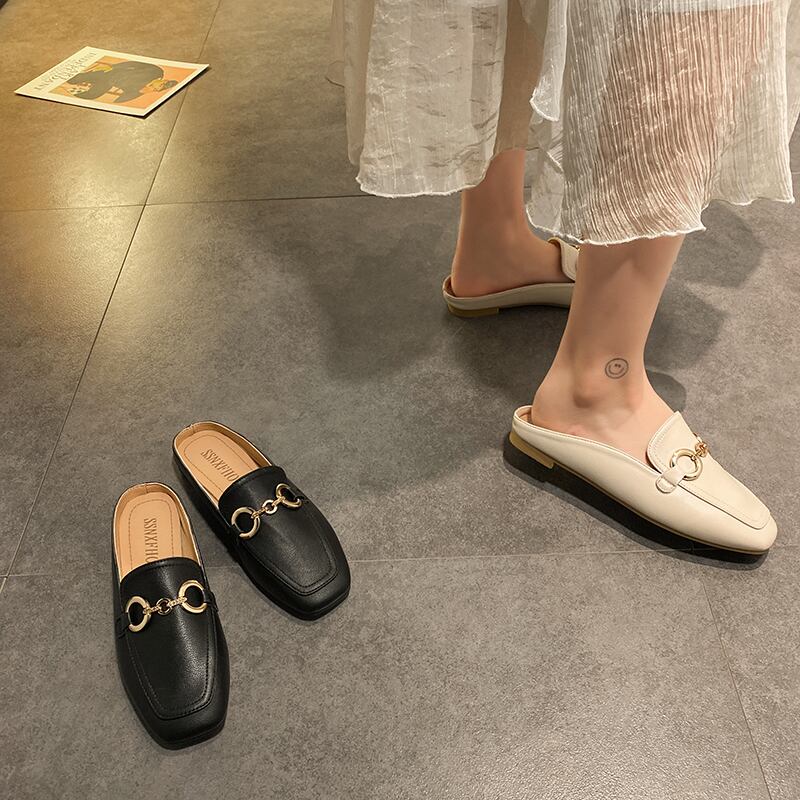 包頭半ドラッグ女性2020年夏の新しいins潮ジッパー野生学生ネット赤の正方形のヘッドフラットスリッパ 部族の婦人靴2527696