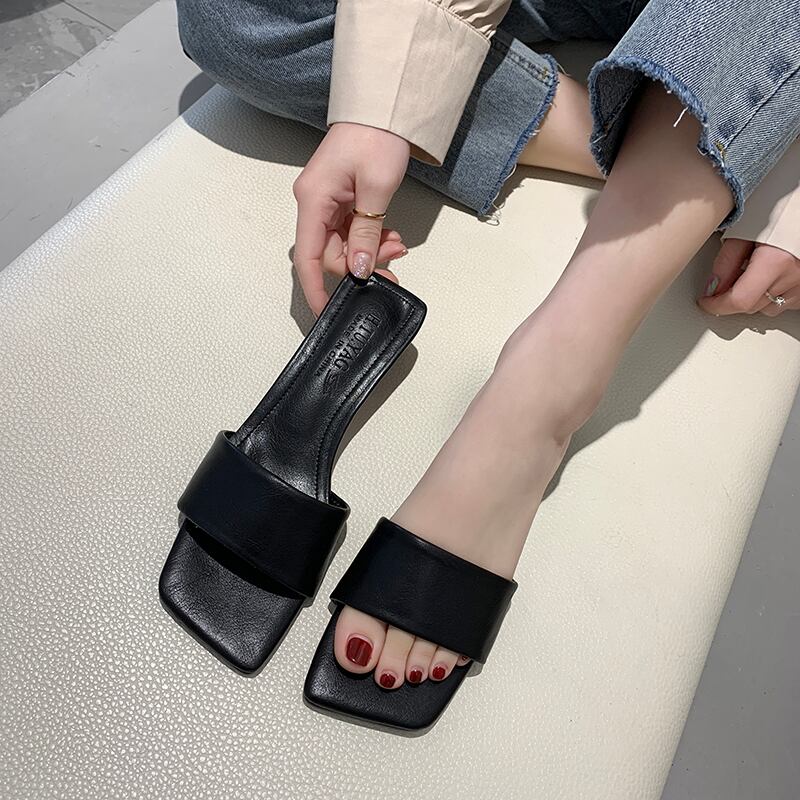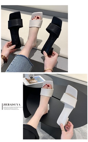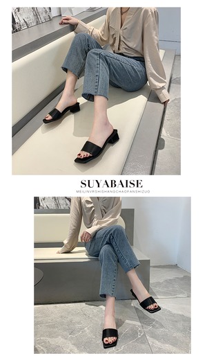 スリッパの女性は2020春と夏の新しいinsのファッション野生のネット赤の厚いつま先のハイヒールの女性の潮を着ます 部族の婦人靴0307705