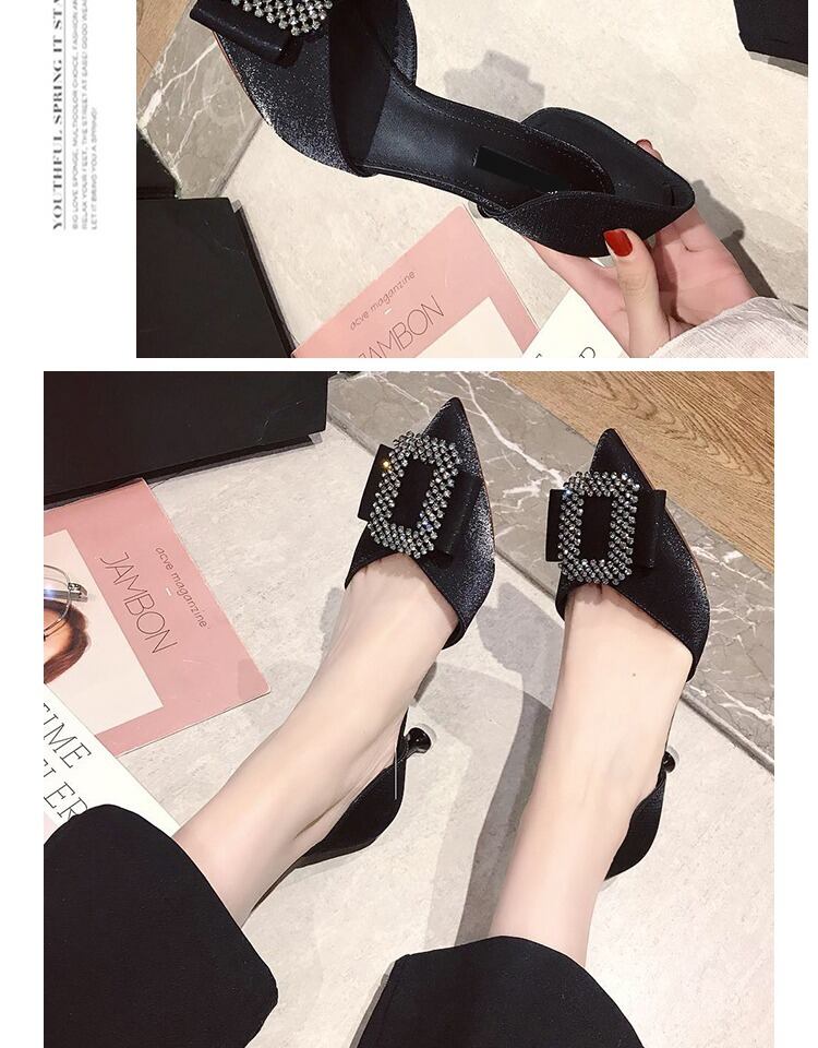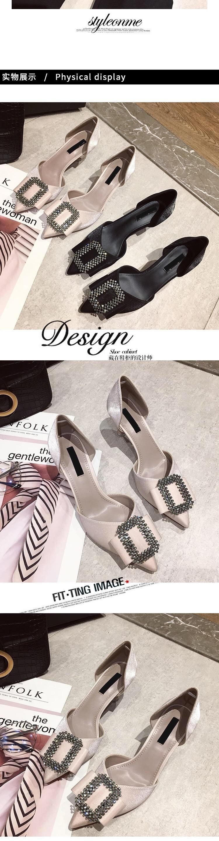 ネット赤シングルシューズ女性2020春と夏の新しいバージョンの先のとがった先のとがった野生のハイヒールスクエアバックルラインストーン猫のかかとの女性の靴 部族の婦人靴5209498