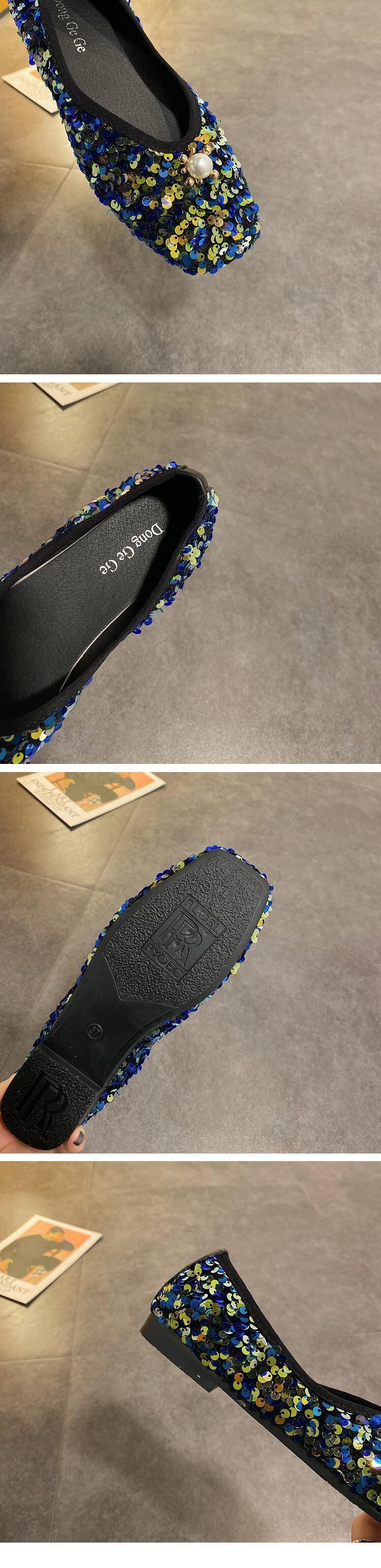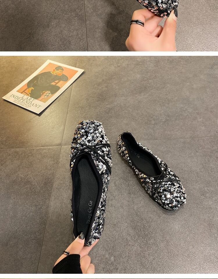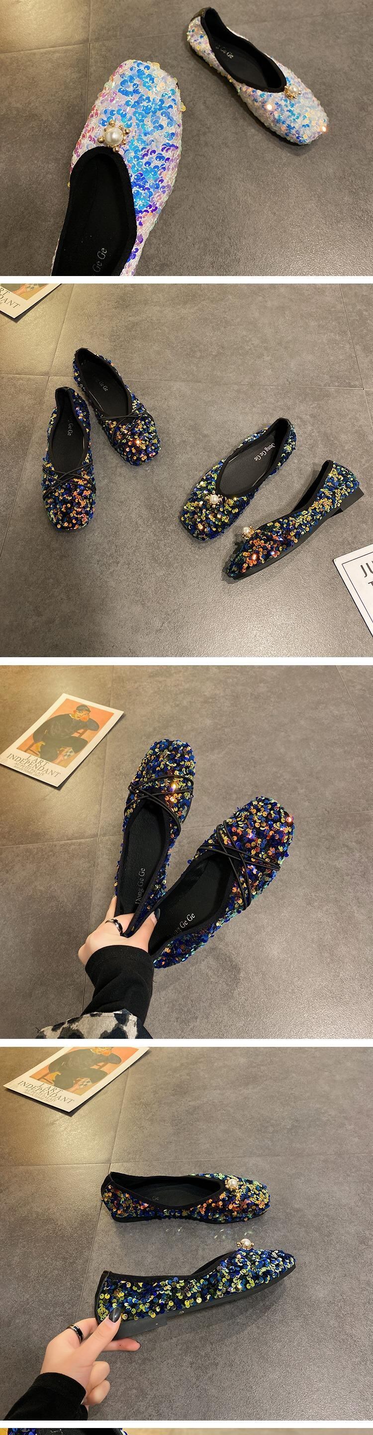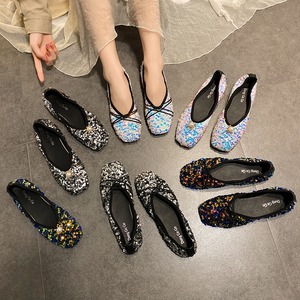 スクエアヘッドシングルシューズ女性2020年春と夏の野生の穏やかな妖精スタイルスパンコールエンドウ豆靴ネット赤いフラットシューズ 部族の婦人靴2634445