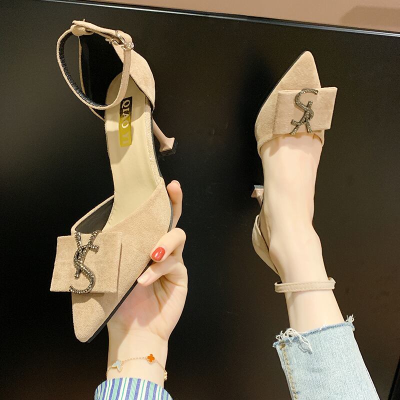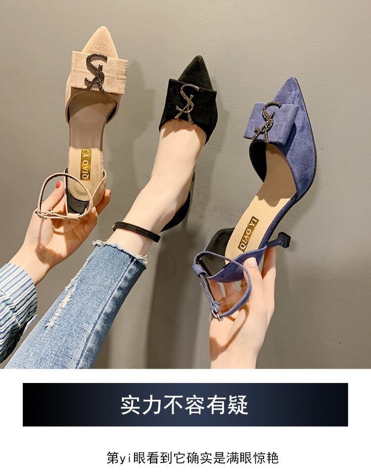 ヒールの女性の薄くて用途の広い2020新しい春の単一の靴黒作業靴妖精スタイル浅い口先のとがった靴 部族の婦人靴2960188