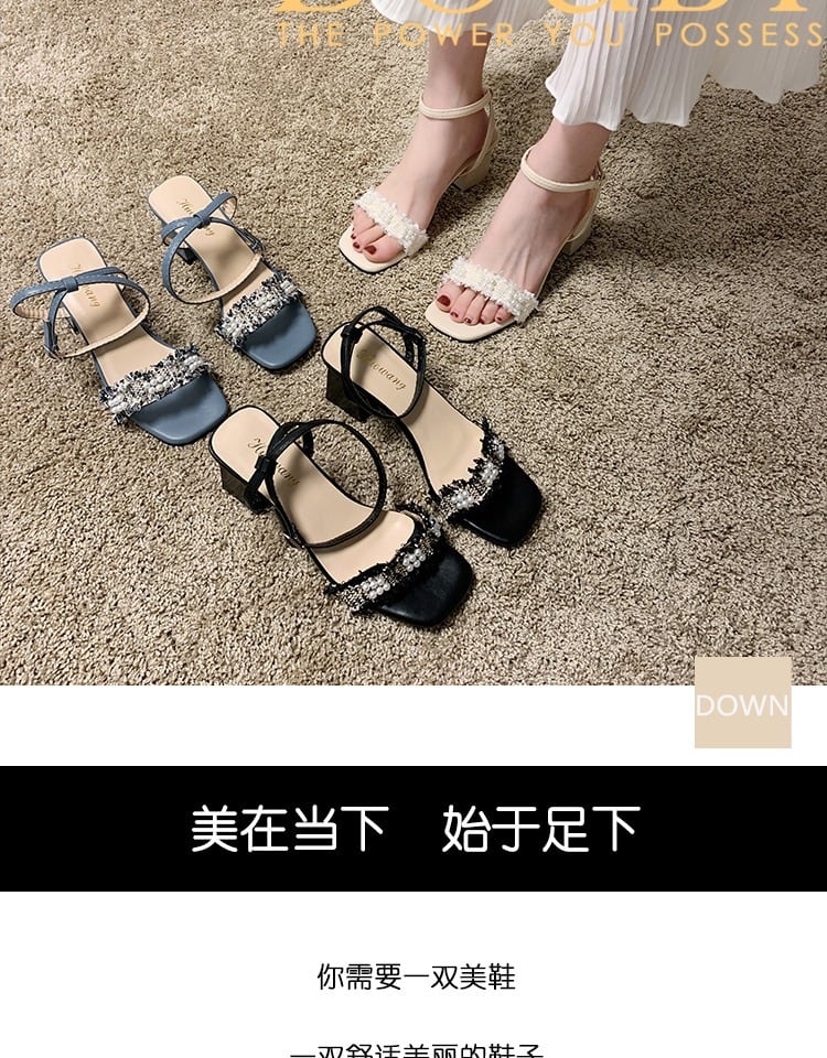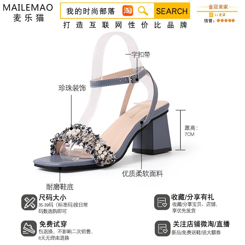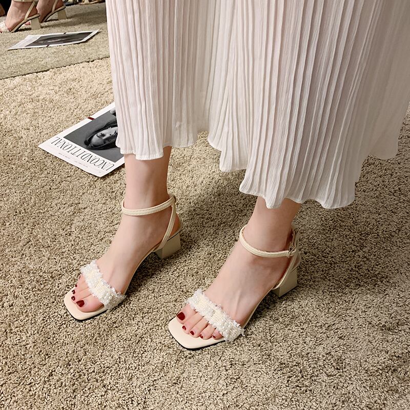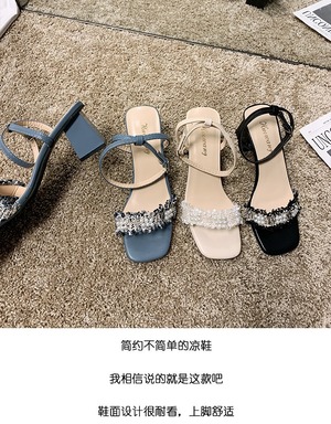 サンダル女性2020夏の新しいネット赤バージョン野生のシンプルな妖精スタイルinsは薄いベルトパールサンダルで厚い潮 部族の婦人靴0090454