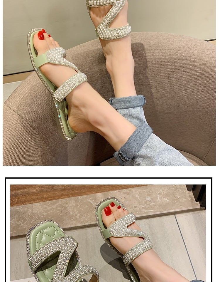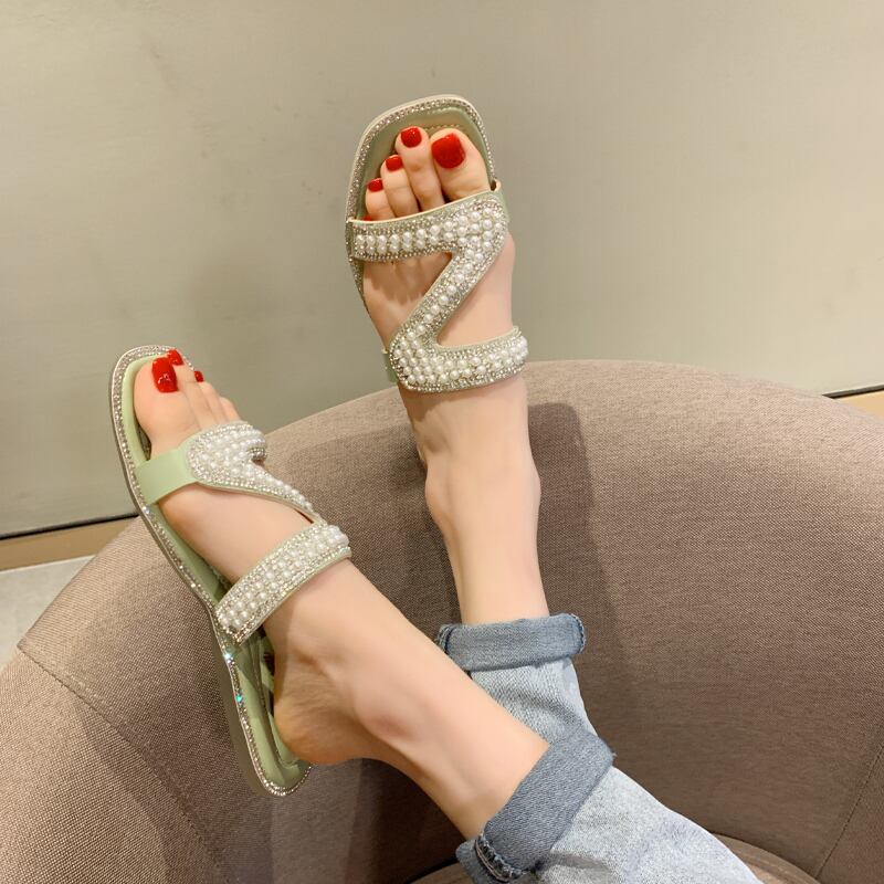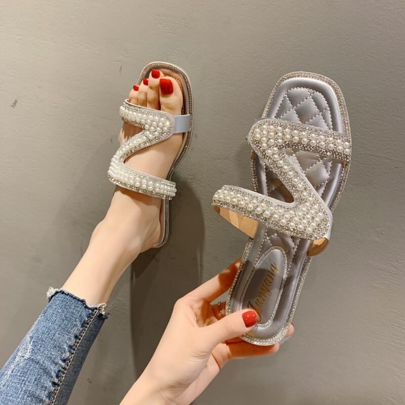 スリッパ女性はファッション2020春と夏の新しい野生の単語のドラッグ女性のインラインストーンパールビーチサンダルドラッグを着用します 部族の婦人靴4079066