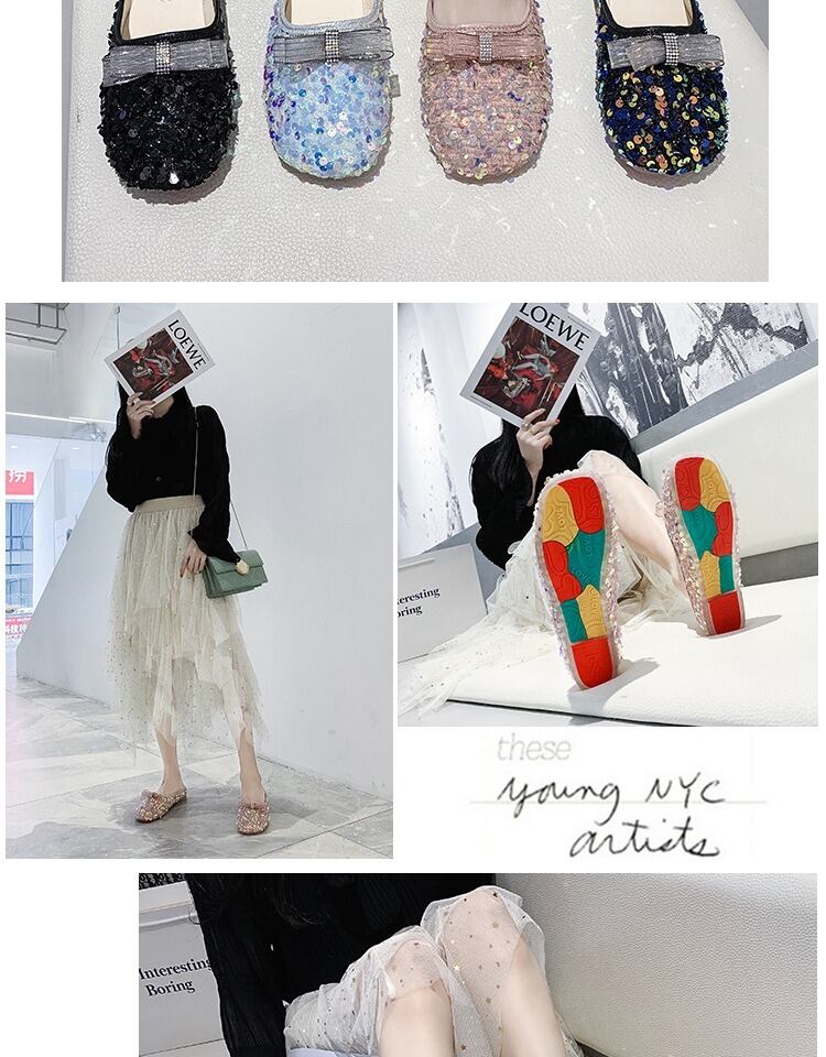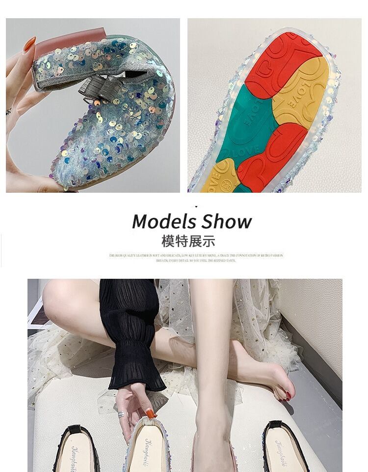 サンダルとスリッパの女性は2020春のファッションネット赤野生のノンスリップフラットボトムスパンコールins潮包頭ハーフドラッグを着用します 部族の婦人靴6685923