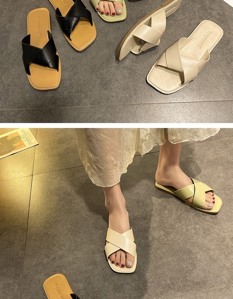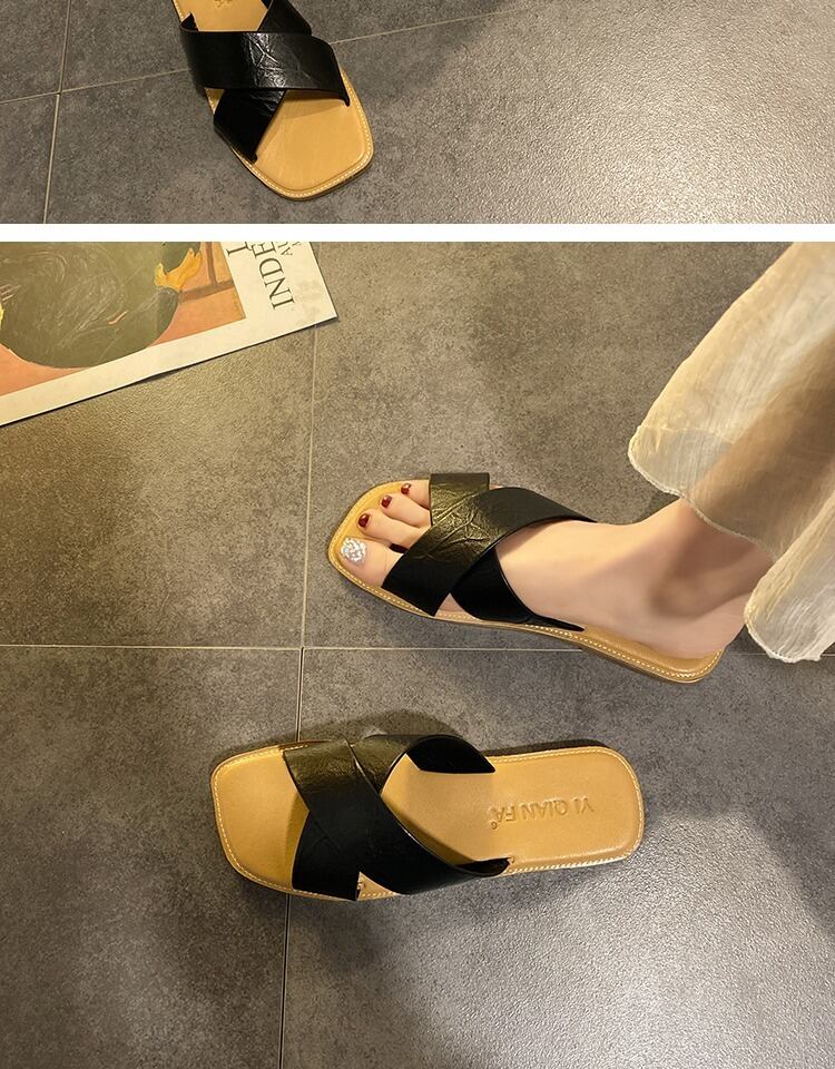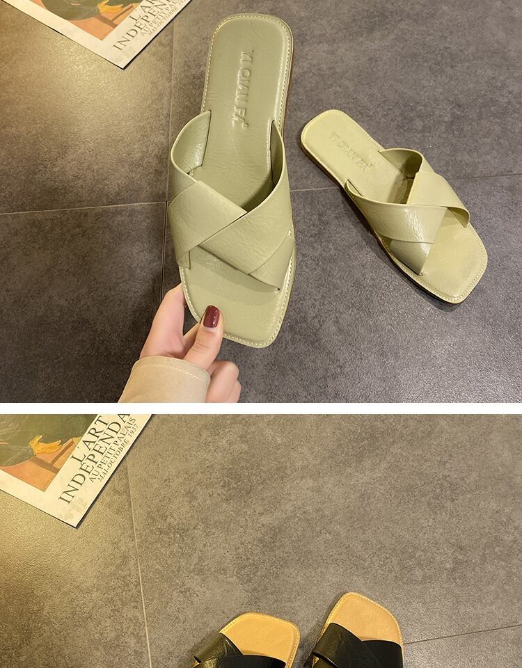 純赤いスリッパ女性は2020夏のファッション無地クロス野生のカジュアルなビーチフラットサンダルを着用します。 部族の婦人靴9874747