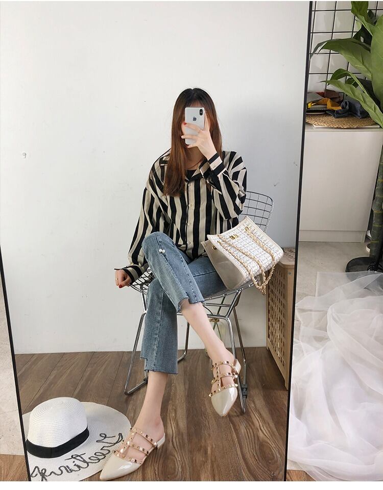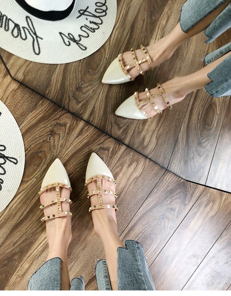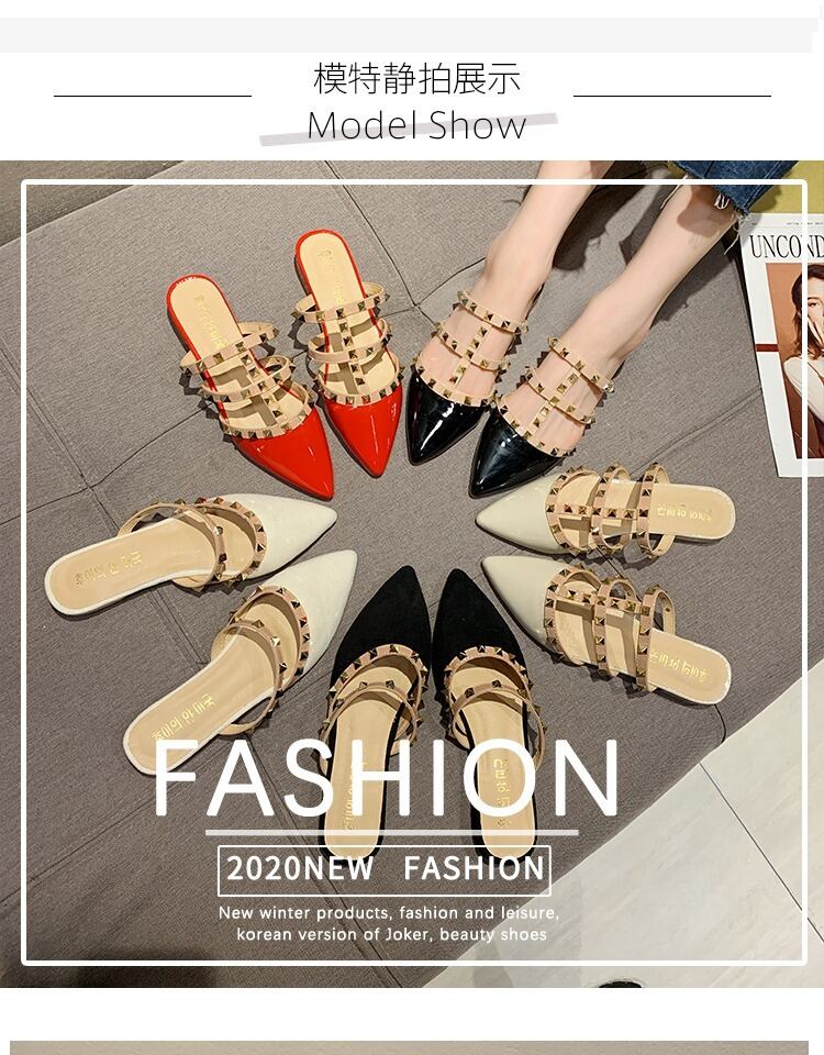 ホウトウのサンダルとスリッパの女性は、2020年夏の尖ったリベットの野生のハーフドラッグフラットボトムネットレッドミューラーの夏の新しいバージョンを着用します 部族の婦人靴0675847