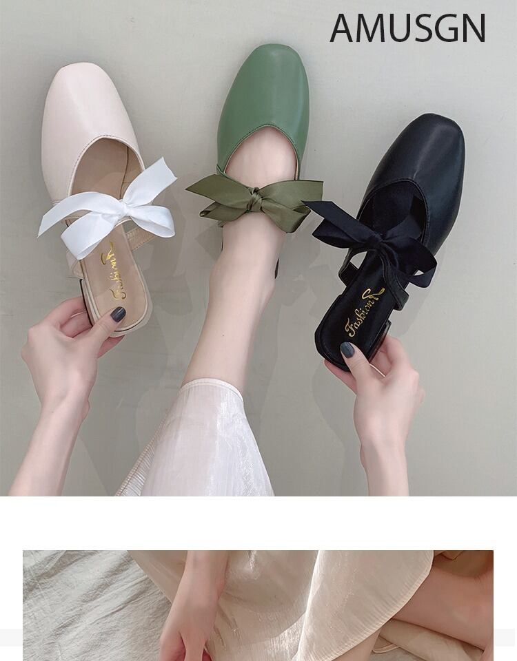 サンダルとスリッパ女性2020年春と夏の新しいins潮蝶ネクタイ野生の正方形のヘッド怠惰なハーフドラッグMuller靴女性 部族の婦人靴3849476