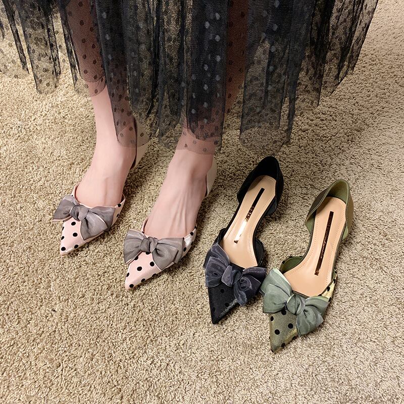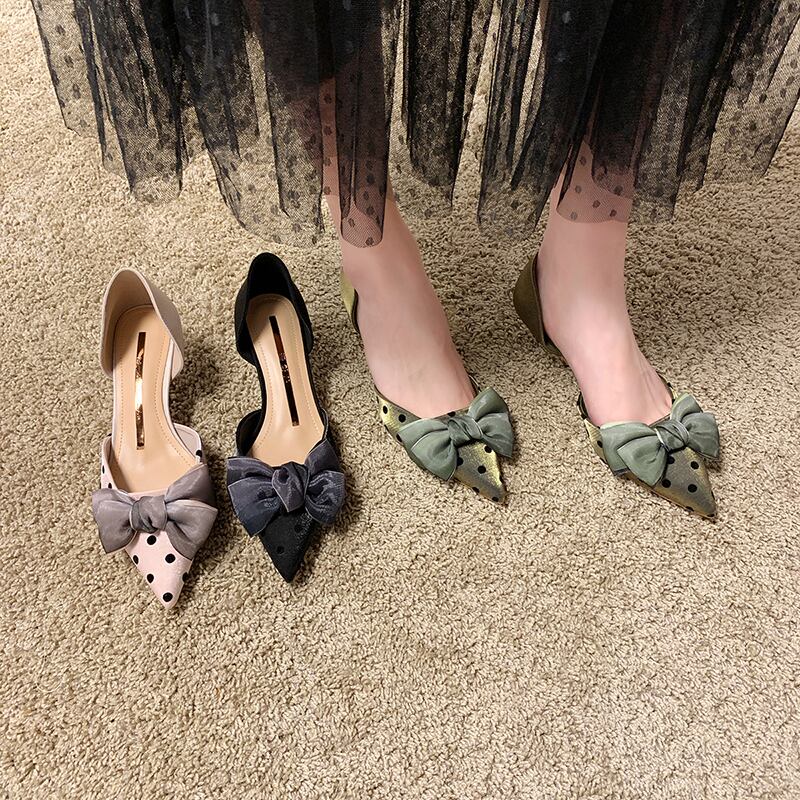 先のとがったハイヒール女性の細かいヒール2020春と夏の新しい野生のちょう結びの妖精の靴ファッションシングルシューズの潮 部族の婦人靴9719615