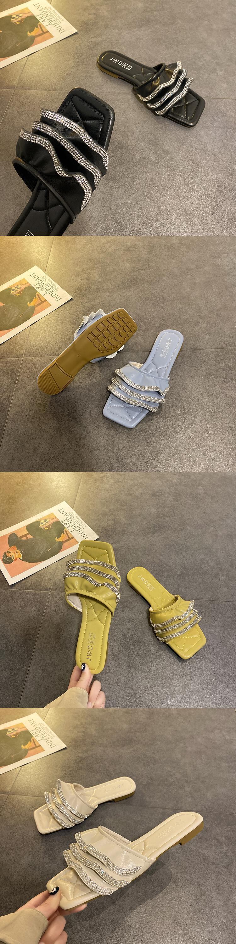 スリッパ女性は2020年春と夏の新しいファッション野生のラインストーンネット赤インワード妖精風サンダルを着用します 部族の婦人靴6111813