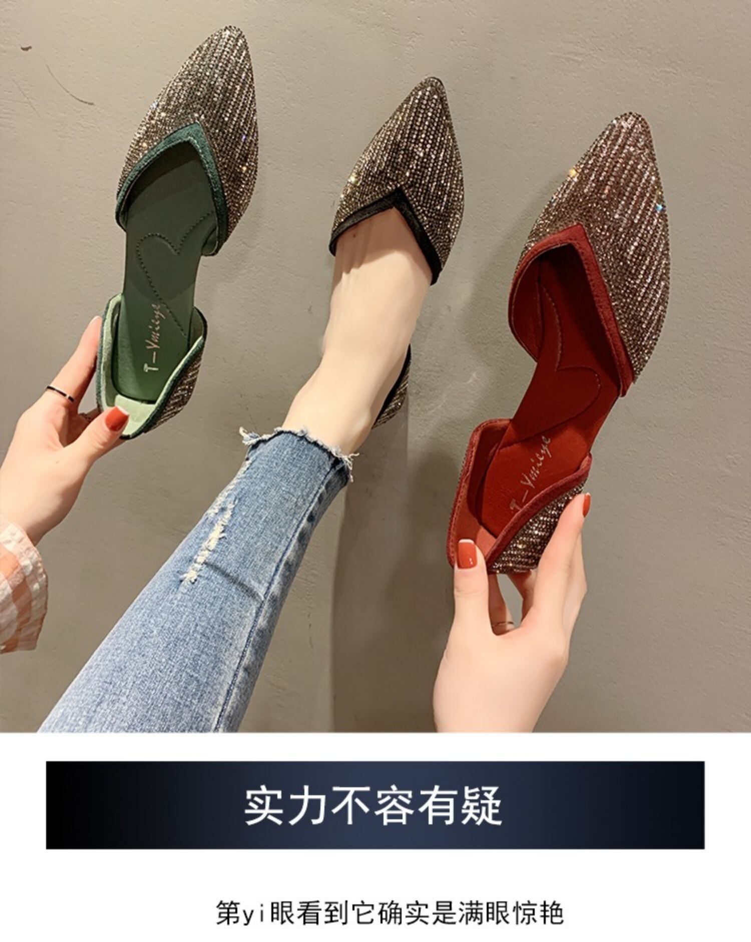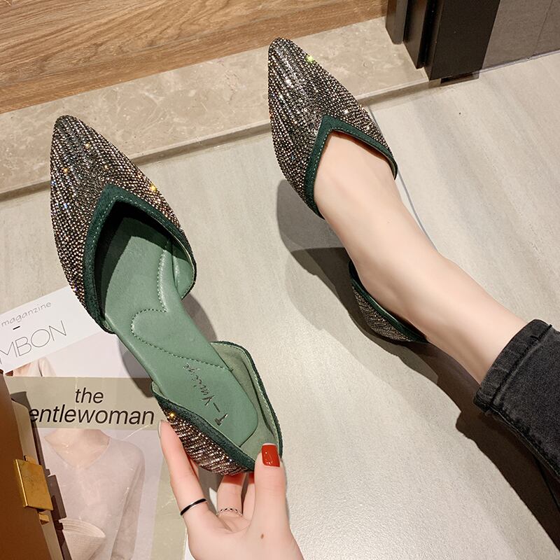 先のとがったサンダル2020新しいファッション野生スパンコールラインストーンフラットボトムノンスリップワンペダルシングルレディースシューズ潮 部族の婦人靴3393345