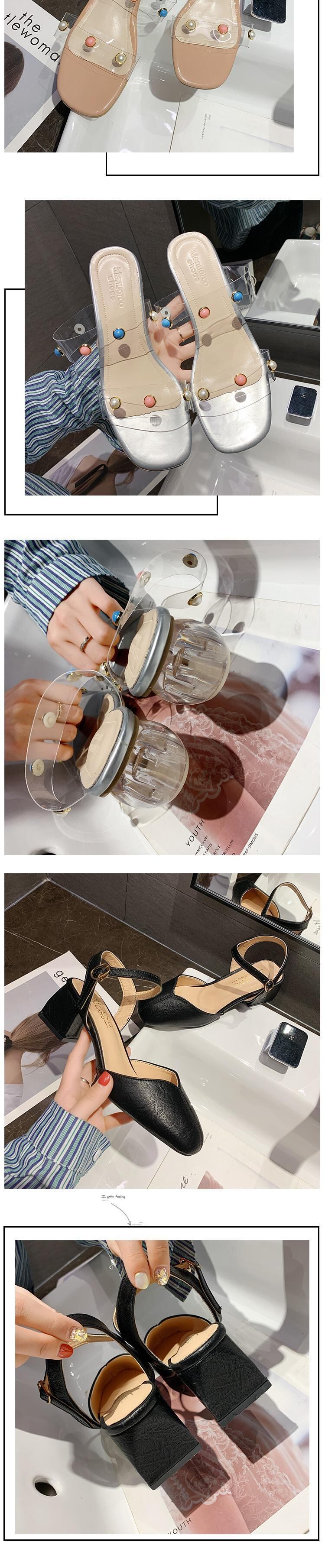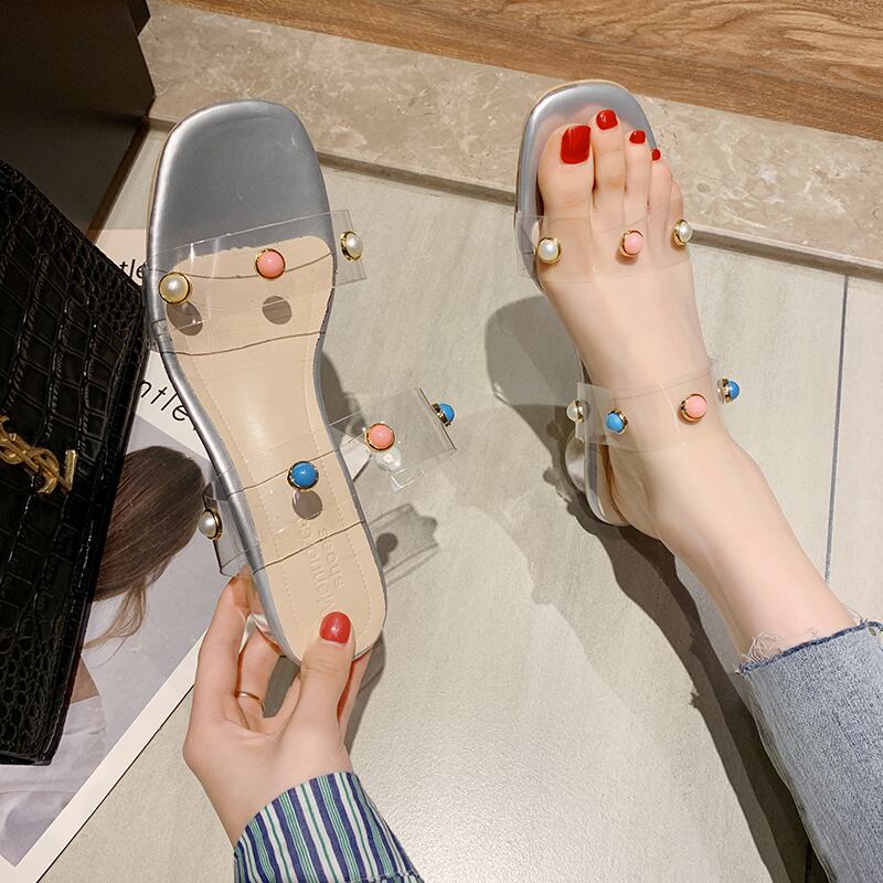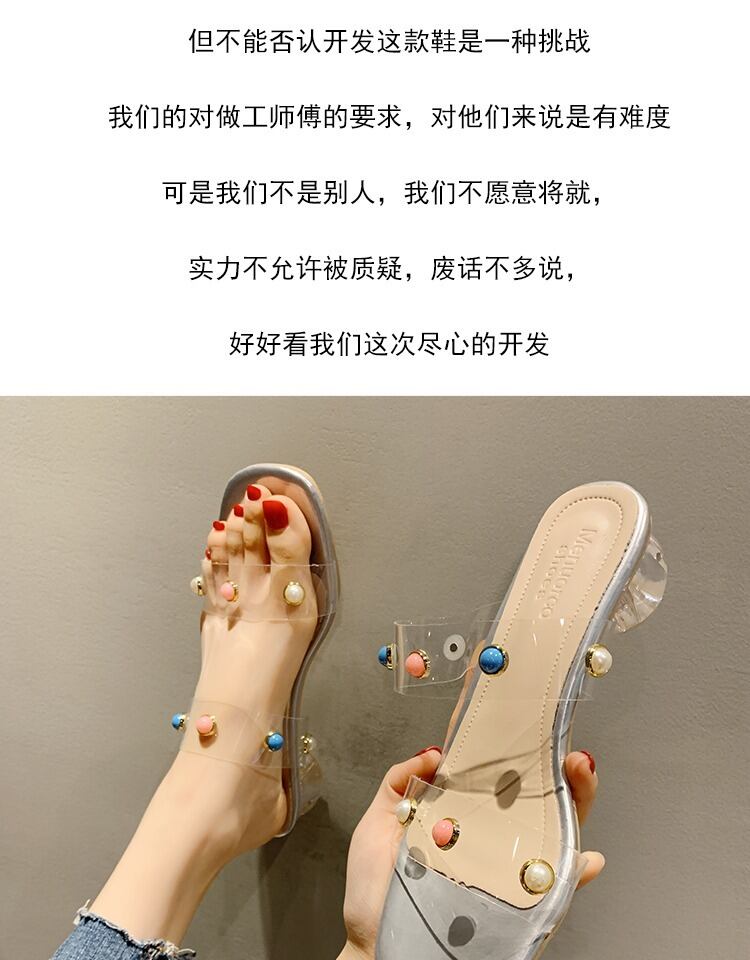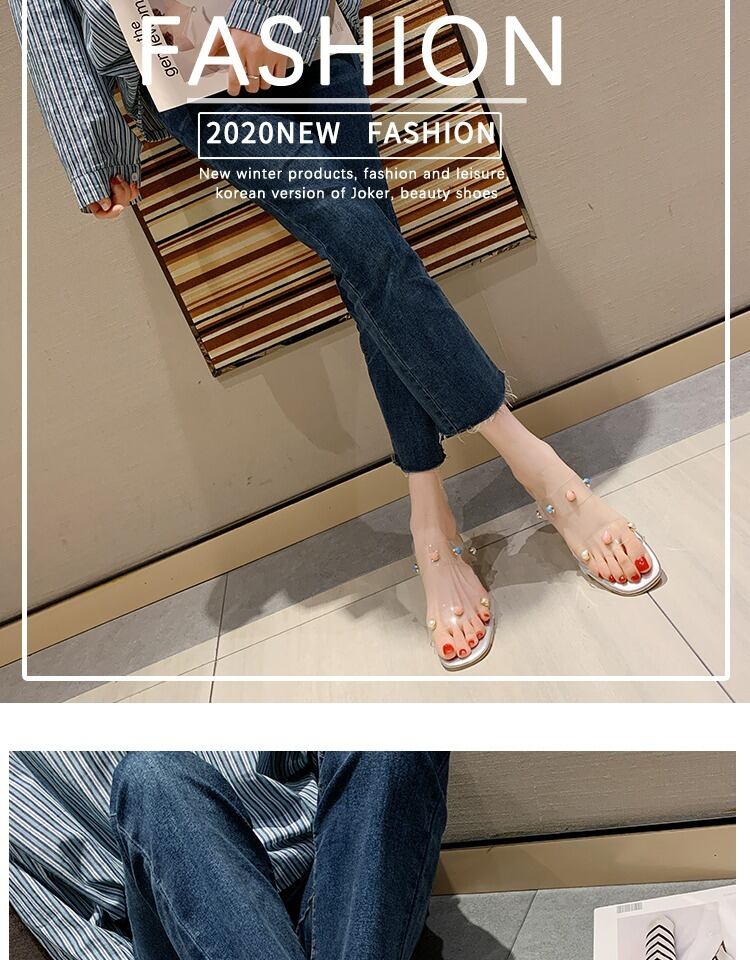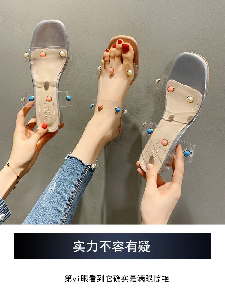 スリッパの女性はinsの潮2020春の新しいファッション野生の厚い真珠のカジュアルな単語のサンダルを着用します 部族の婦人靴5916599