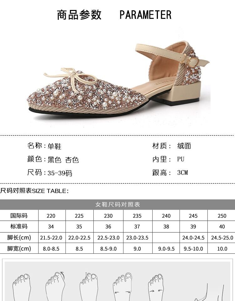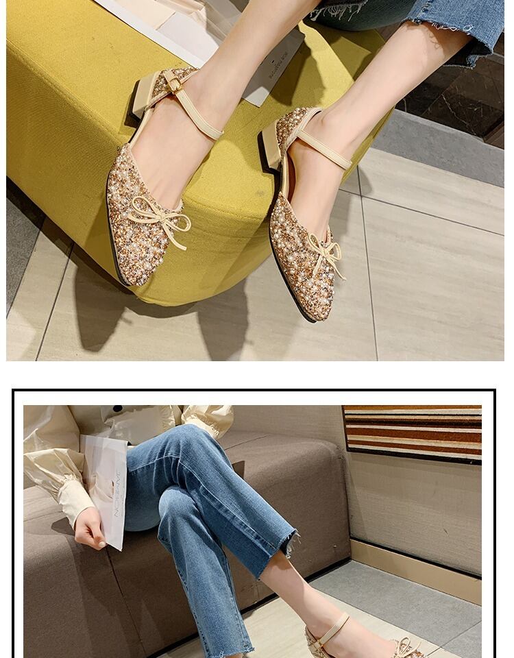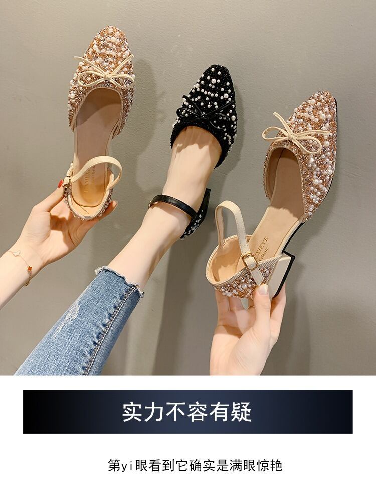 野生の蝶ネクタイバックルラインストーンパールの先のとがった厚いヒールシューズのサンダルレディース春/夏2020新しいバージョン 部族の婦人靴8790358