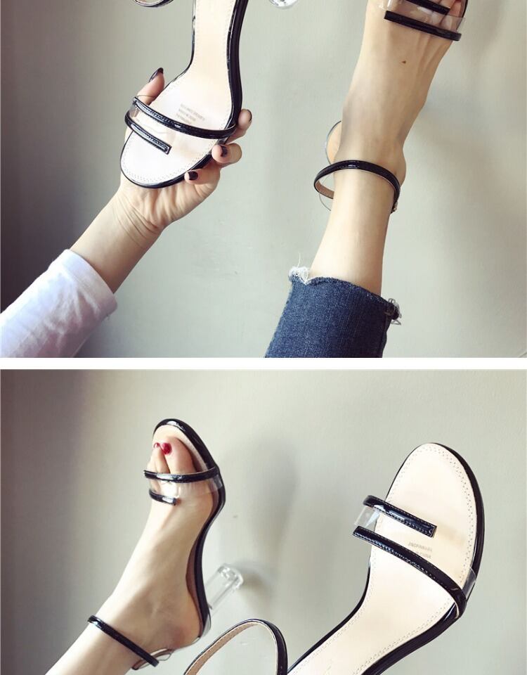 単語透明な小さな新鮮なハイヒールの女性の2020年夏の野生のセクシーなローマの靴サンダルの新しいバージョン 部族の婦人靴7403150
