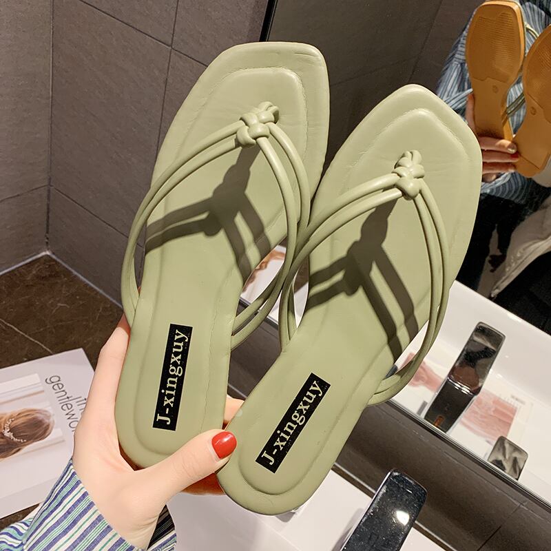 ネットの赤いサンダルとスリッパの女性は2020年の新しい夏の野生のつま先の正方形のつま先のフラットフリップフロップ女性を着用します。 部族の婦人靴6814106