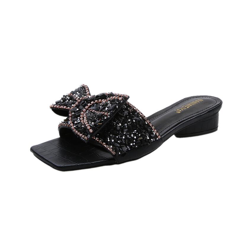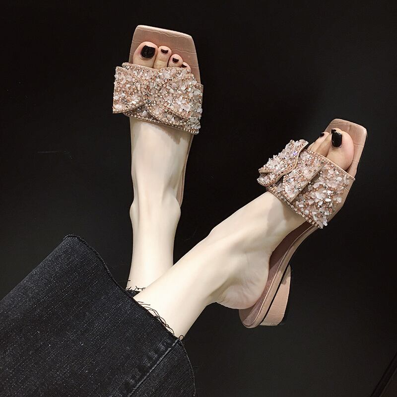女性のサンダルとスリッパは2020春の新しいinsラインストーンの野生の開いたつま先を妖精の風で厚く着用しています 部族の婦人靴8909793