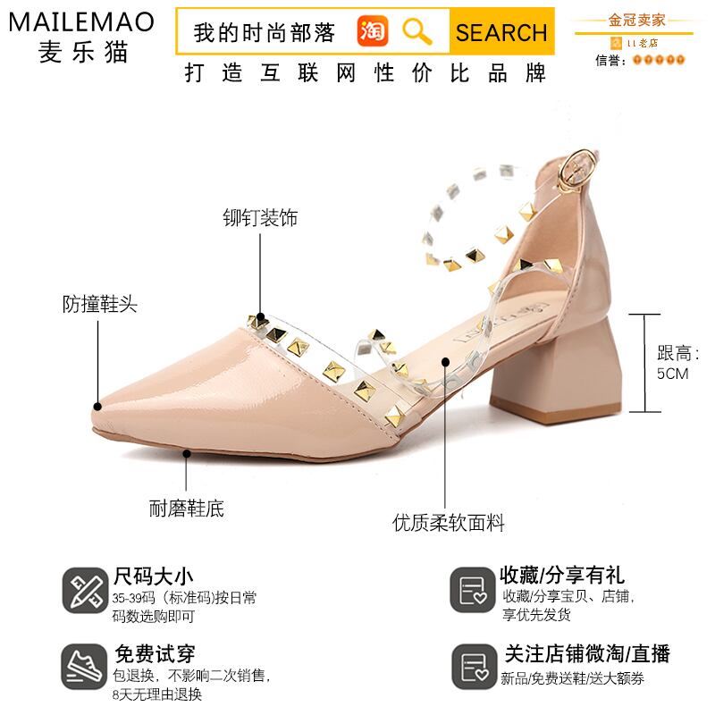 包皮透明サンダル女性の妖精スタイル2020年夏の野生のハイヒールの厚いヒールと純赤の女性の靴 部族の婦人靴3224669