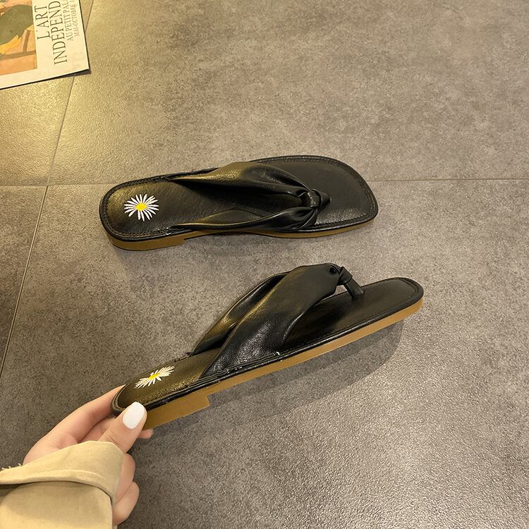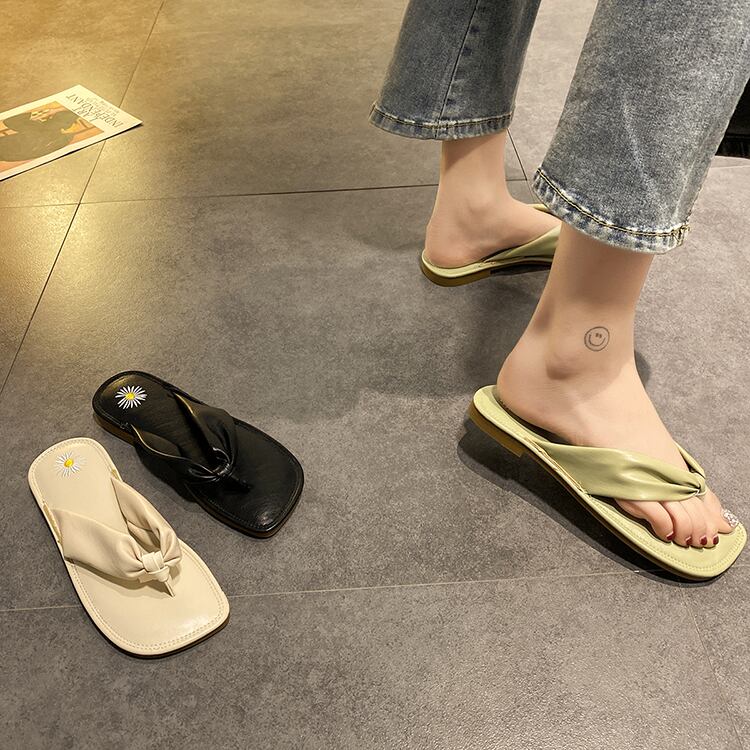 ネットレッドフリップフロップ女性の摩耗2020新しい夏のファッションスクエアヘッドソフトボトムクリップつま先滑り止めサンダルの潮 部族の婦人靴2164327