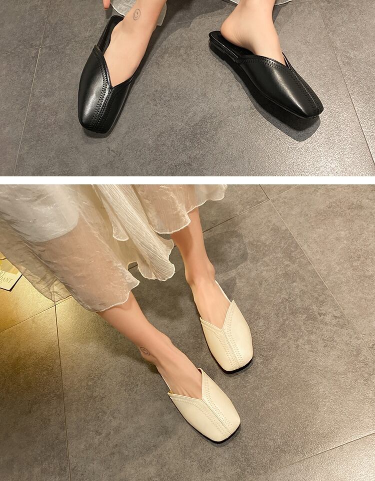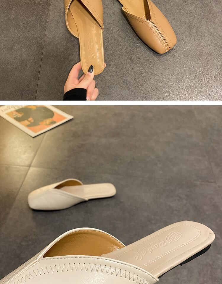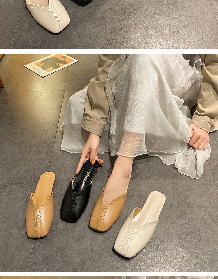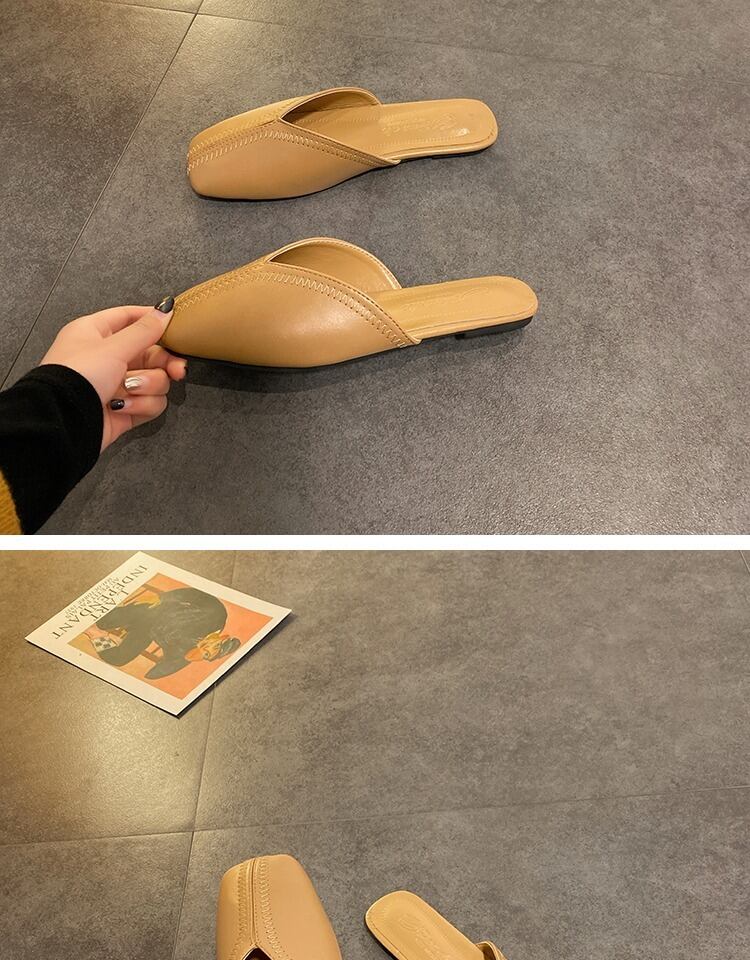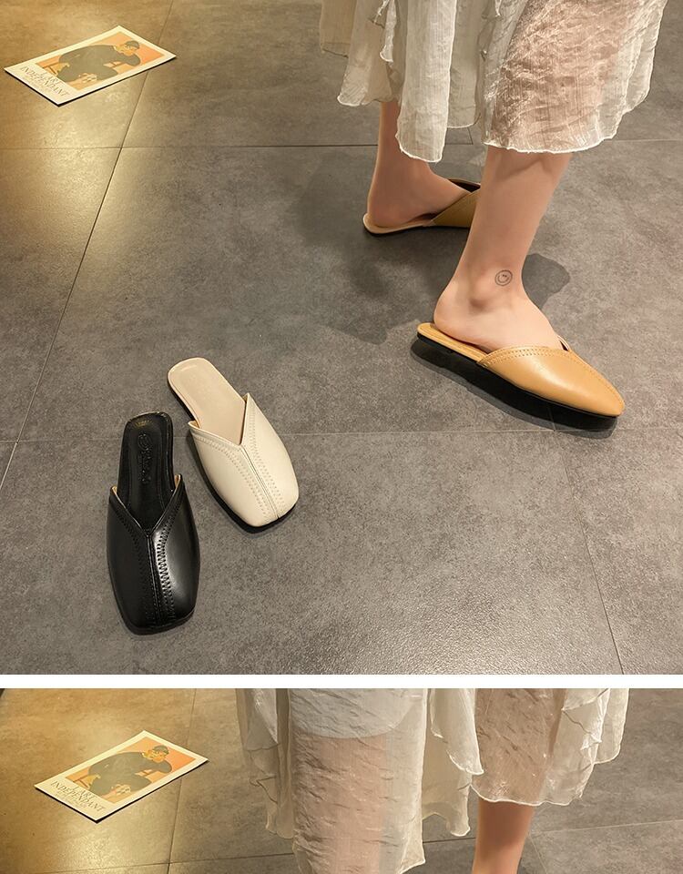 包頭ハーフスリッパ女性の摩耗2020春と夏の新しいinsバージョンスクエアヘッドネット赤野生のフラットミュール靴女性 部族の婦人靴8975769