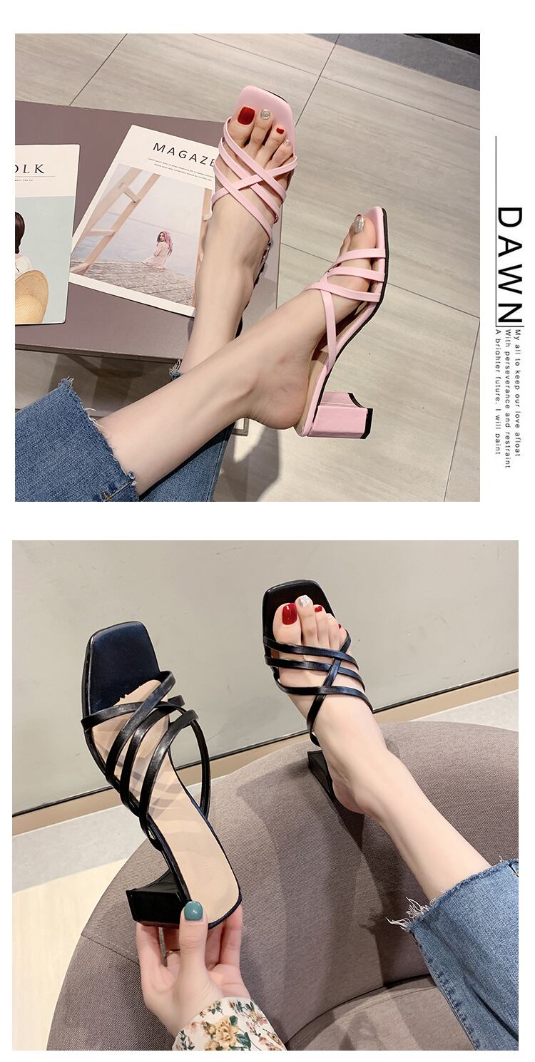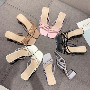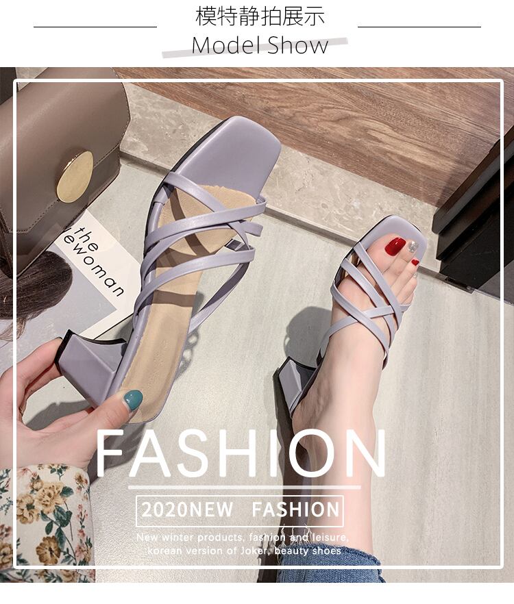 スリッパ女性は2020年夏の新しいinsタイドバージョンスクエアヘッドワイルドネットレッド厚い妖精風ハイヒールを着用します 部族の婦人靴7035751