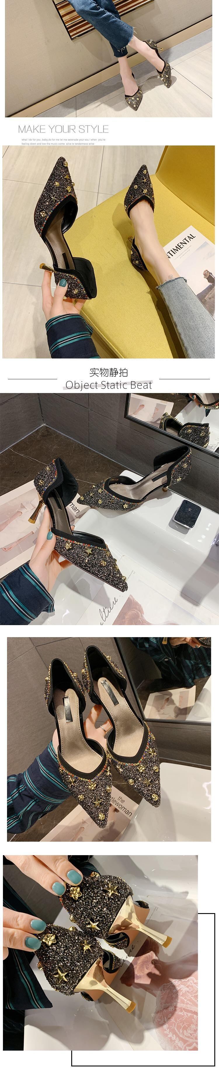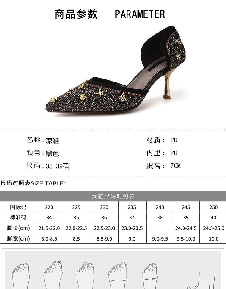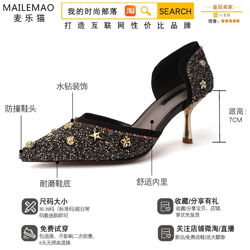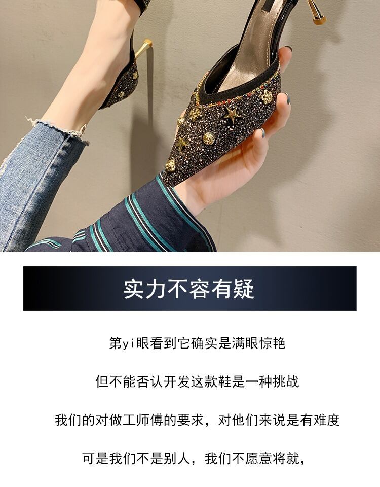 先のとがったシングルシューズ女性2020春の新しいバージョンのラインストーンファッションネット赤1ペダルスティレットヒール女性の潮 部族の婦人靴9066675