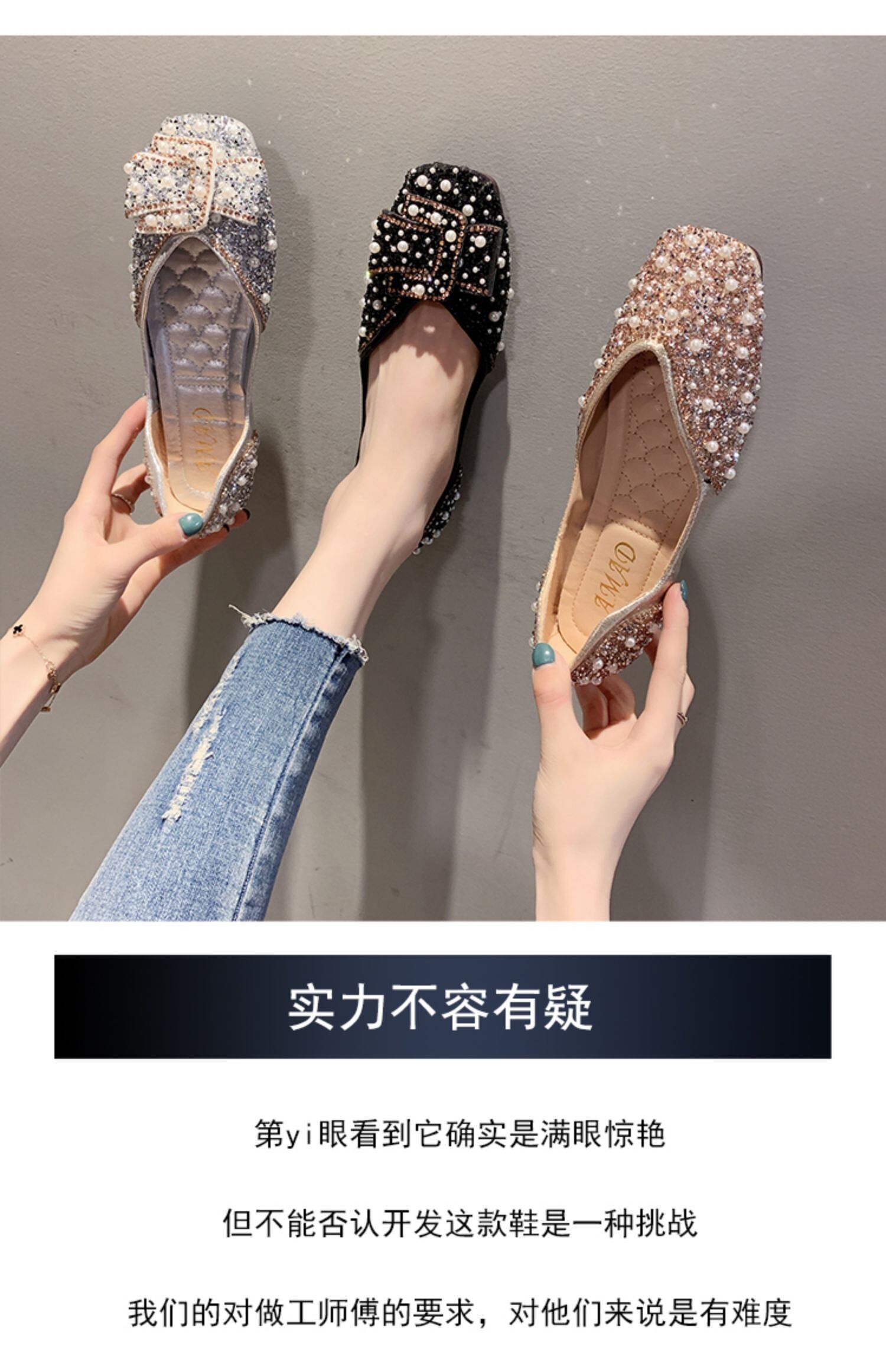 シングルシューズレディース2020春新しいバージョンのラインストーンファッションワイルドスクープシューズネットレッド浅い口フラットボトムセットフットピースシューズ 部族の婦人靴1237792