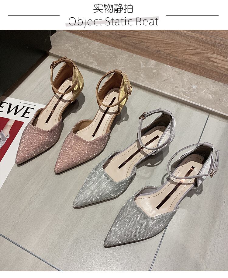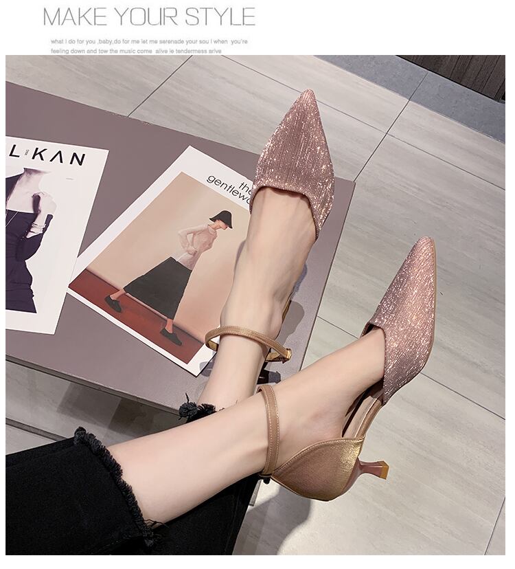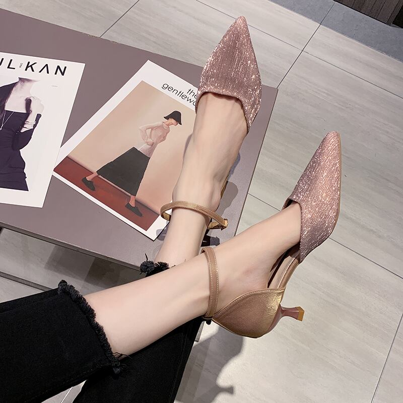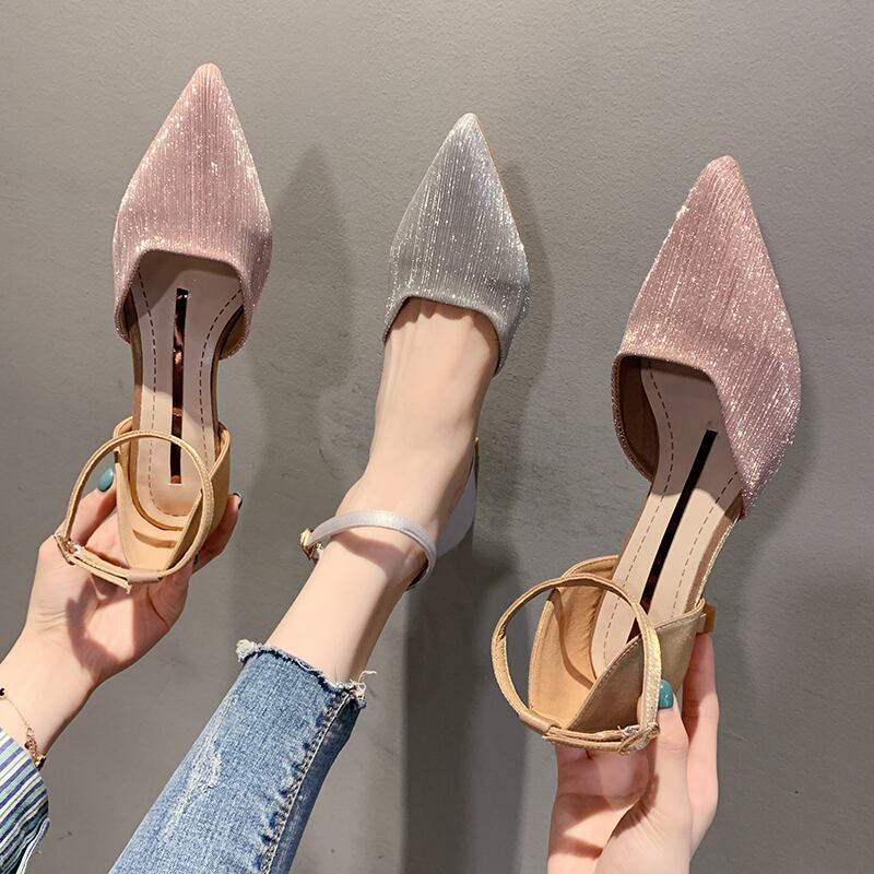 シングルシューズレディース2020夏の新しいinsバージョンのファッションワイルドネットレッドポインテッド薄いヒールバックルハイヒール 部族の婦人靴8947601