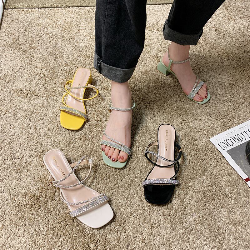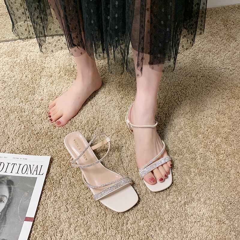 フェアリースタイルのサンダル2020新しい夏のラインストーンの女性のファッションハイヒールの厚い野生の単語のベルト 部族の婦人靴6195823