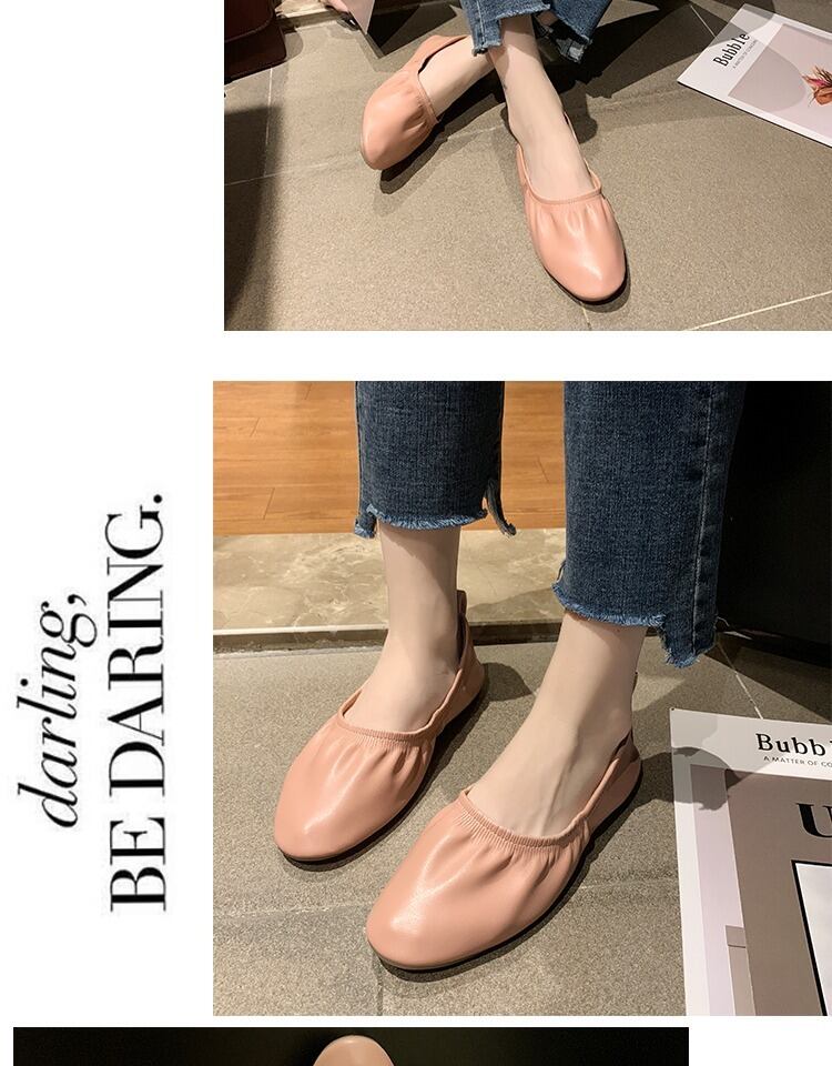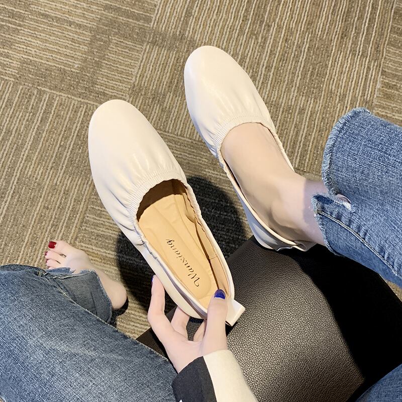 2020新しいバージョンのファッションプリーツフェイスラウンドヘッドフラットシューズ春の女性の靴野生のソフトボトム通勤作業靴 部族の婦人靴7068825