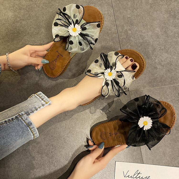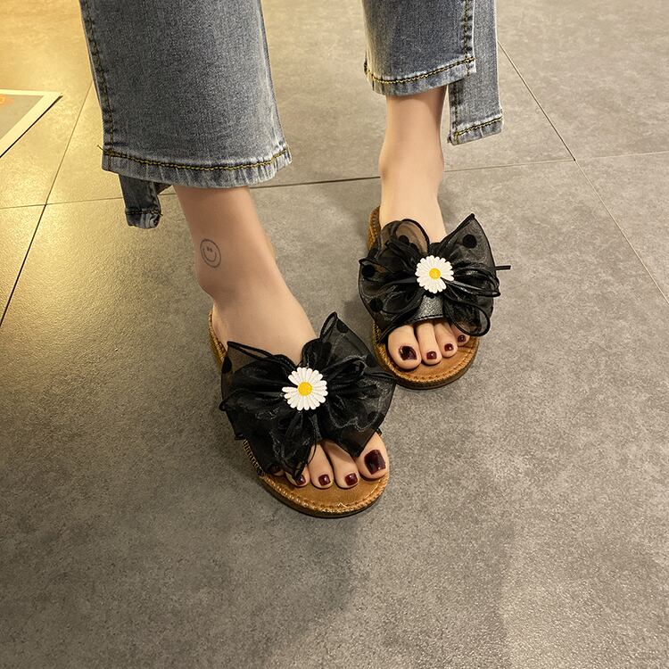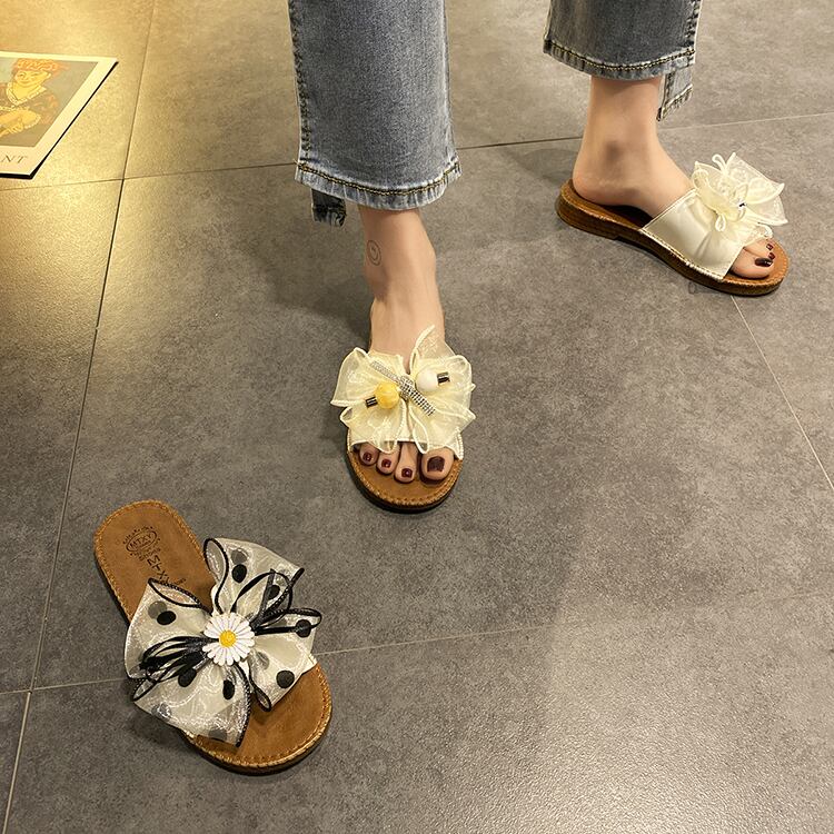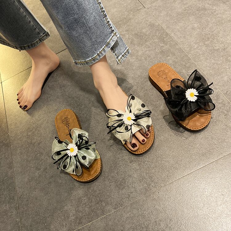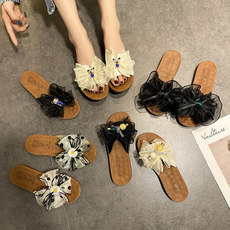 ネットの赤いサンダルとスリッパの女性は、夏のファッション2020の新しいバージョンの弓のオープントゥのソフトボトムの潮のワードドラッグを着用します 部族の婦人靴9168925