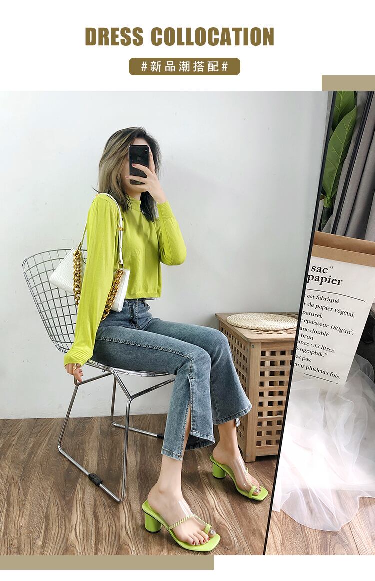 ヒールのサンダルとスリッパの女性は、2020年夏の新しい妖精スタイルのオープンつま先スリッパ野生の透明なつま先スリッパを着用 部族の婦人靴9806151