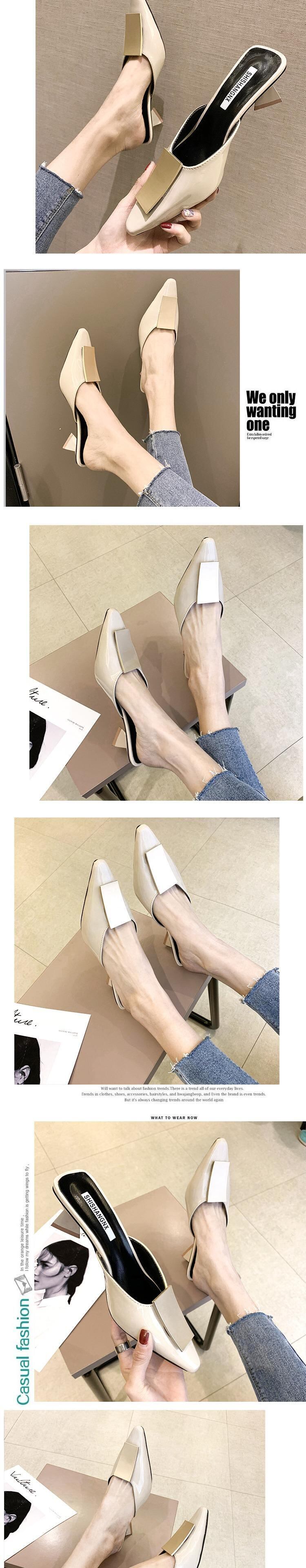 ネットの赤いスリッパの女性は、2020年の春と夏の新しい野生のファッションのハイヒールの靴を包頭ハーフスリッパの潮で薄く指摘しました 部族の婦人靴4287897