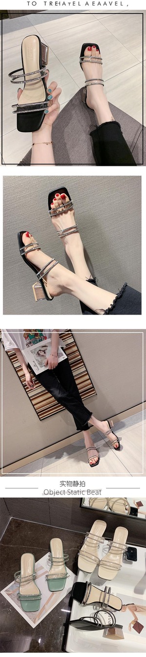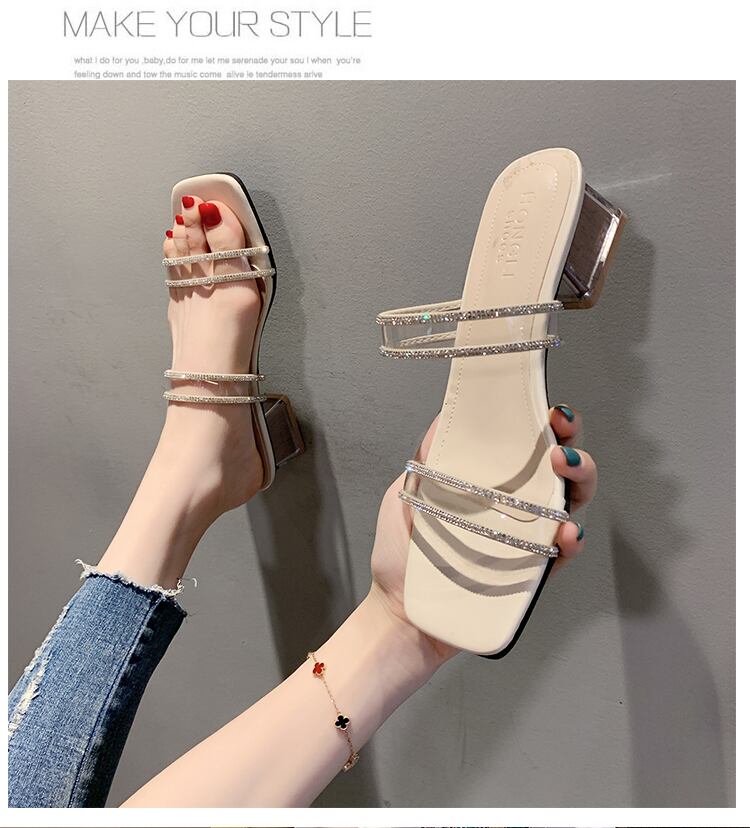 ネットの赤いサンダルとスリッパ女性の夏は2020年の春の新しい妖精スタイルの穏やかなイブニングシューズラインドラッグで厚いラインストーンを着用します 部族の婦人靴2110669