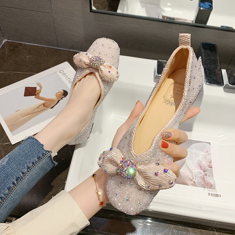 エンドウ靴女性2020新しいファッション春と夏の単一の靴おばあちゃんの靴バージョン浅い口ローヒールラインストーンメッシュ赤いイブニングシューズ 部族の婦人靴6200422