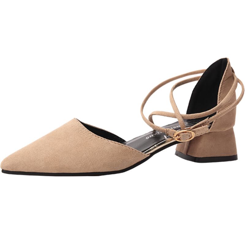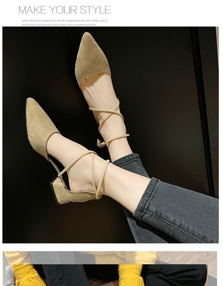 単一の靴女性2020年春と夏の新しいinsネット赤野生バージョンの厚いヒール包頭尖った中空ローマのサンダルの女性 部族の婦人靴7075716