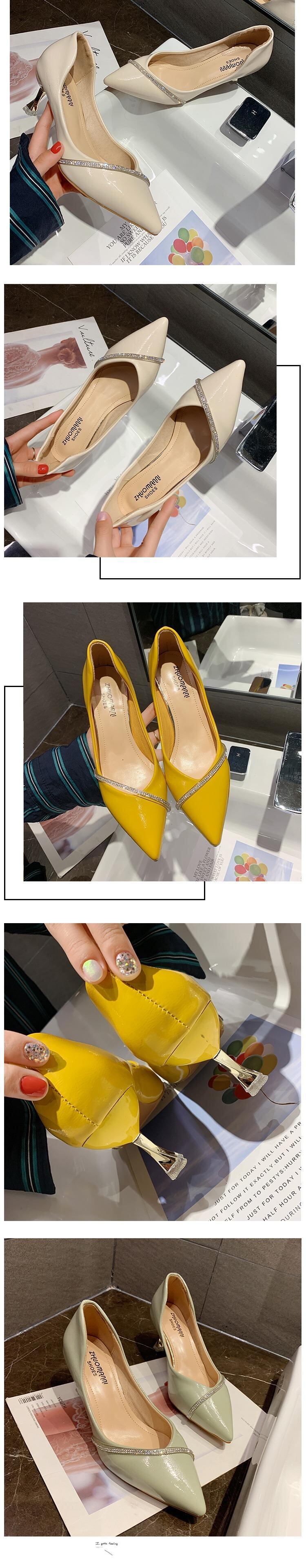 シングルシューズ女性2020新しい春のラインストーンが指摘した浅い口ネット赤バージョンハイヒールの女性の薄くて野生の女性の靴 部族の婦人靴5771306