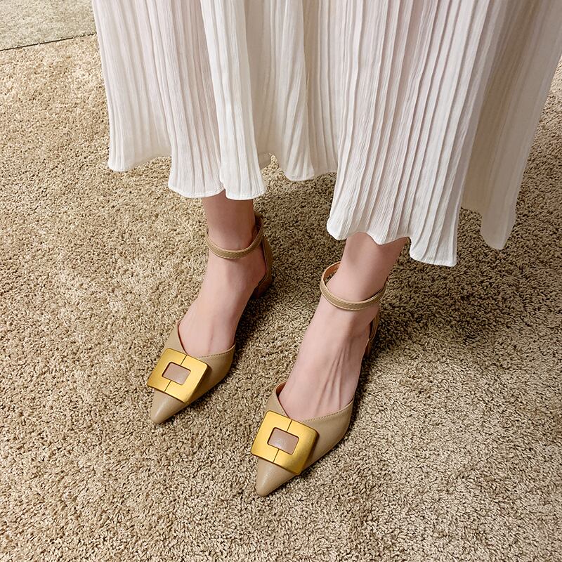 透明サンダル女性2020夏新バージョンメタルバックルワイルドワードバックルフェアリースタイルローマの靴 部族の婦人靴2706209
