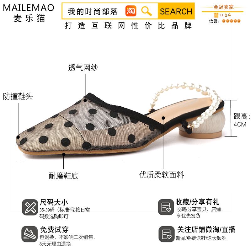 包頭ハーフスリッパの女性は、ミュラースリッパ女性と一緒に厚いネットレッドファッションメッシュ糸真珠の2020新しいバージョンを着用します 部族の婦人靴6578916