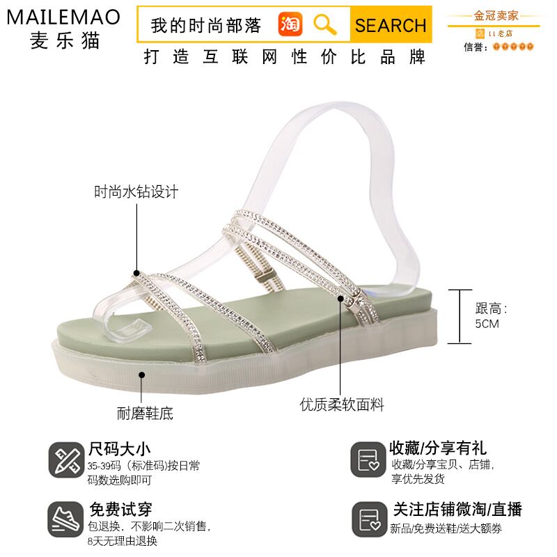 フェアリースタイルの学生スリッパ女性2020夏の新しいinsタイドネット赤いファッション野生の厚い底パールワードスリッパ 部族の婦人靴6595883