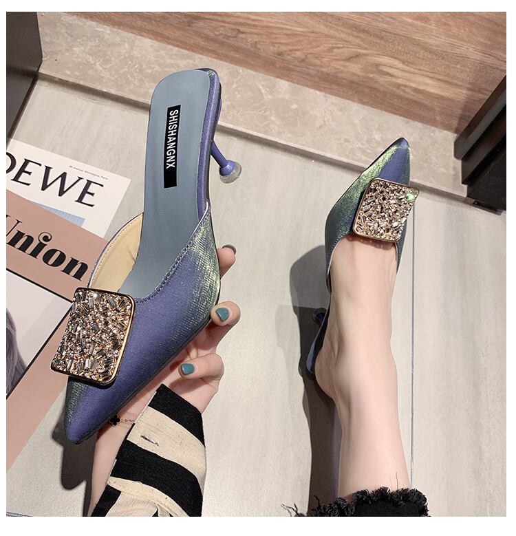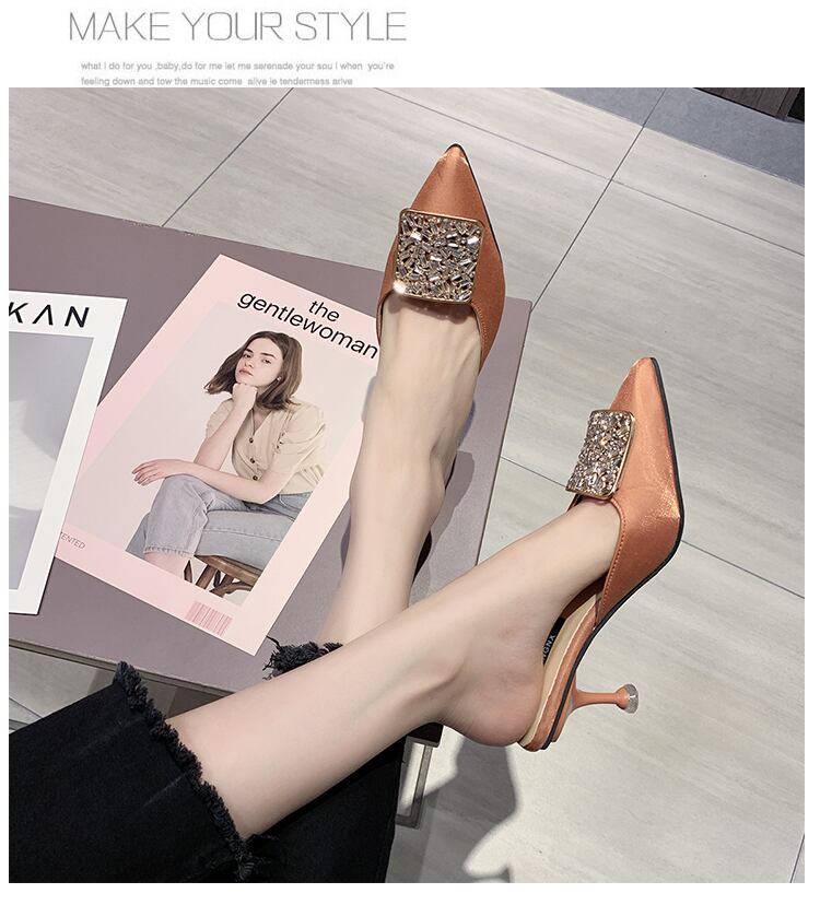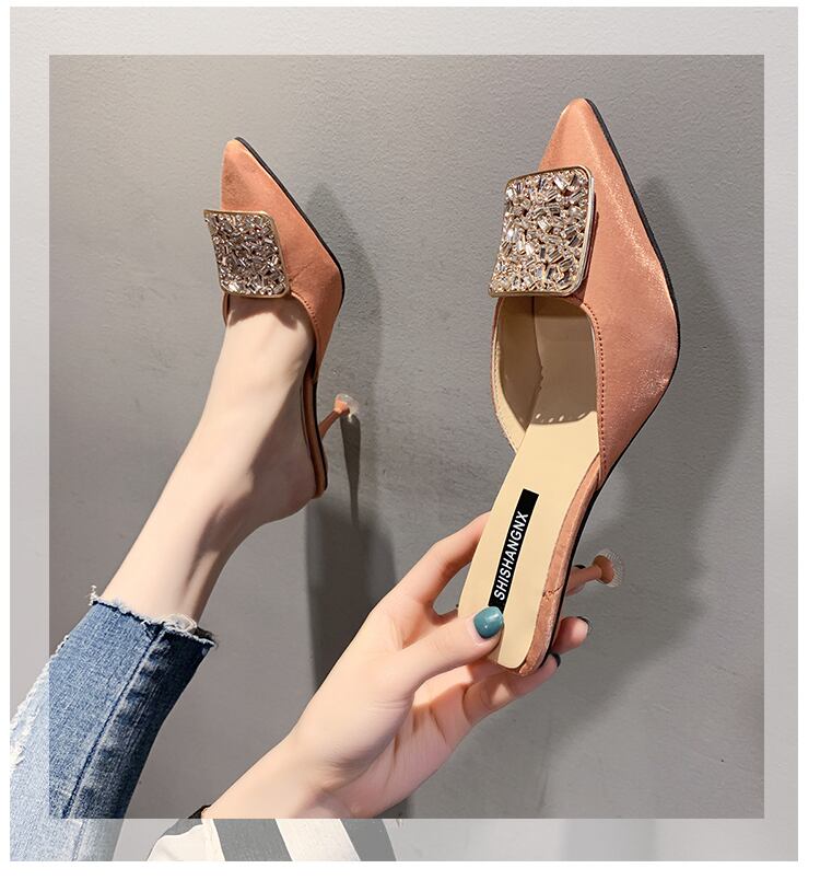 2020夏の新しい女性の靴ネット赤い怠惰な先のとがったハイヒールのスリッパの女性は、ファッショナブルな野生の包頭ハーフスリッパを着用します 部族の婦人靴2226256