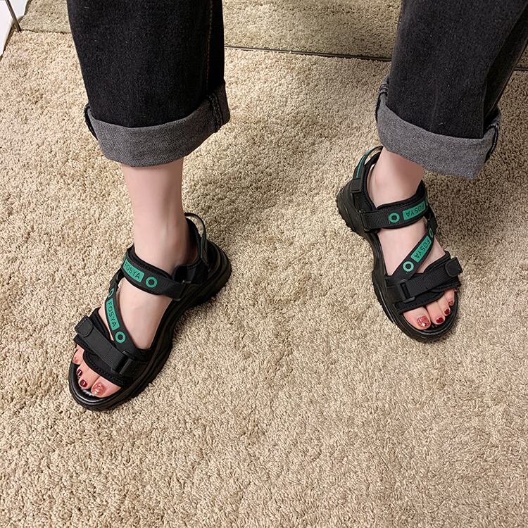 サンダル女性2020夏の新しいinsファッション野生のネット赤学生厚い底ベルクロカジュアルレディースシューズ 部族の婦人靴1963476