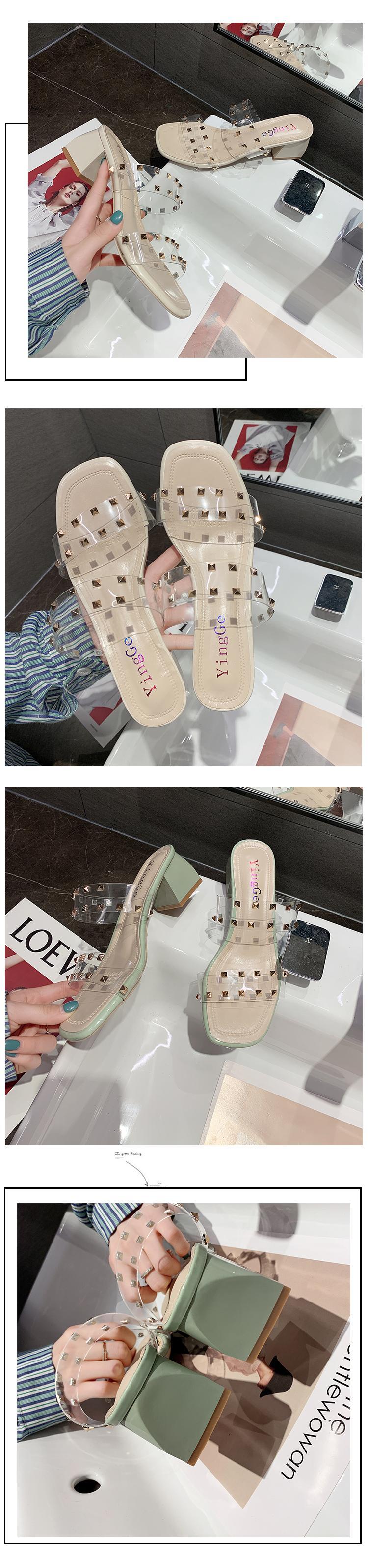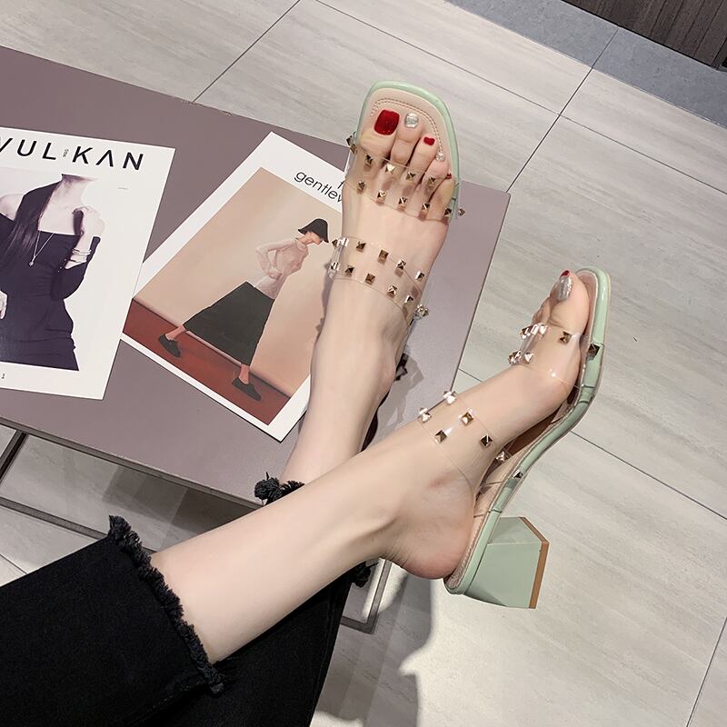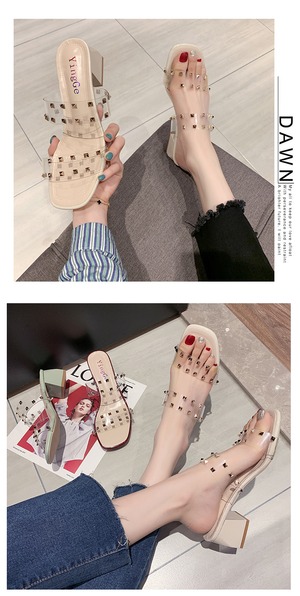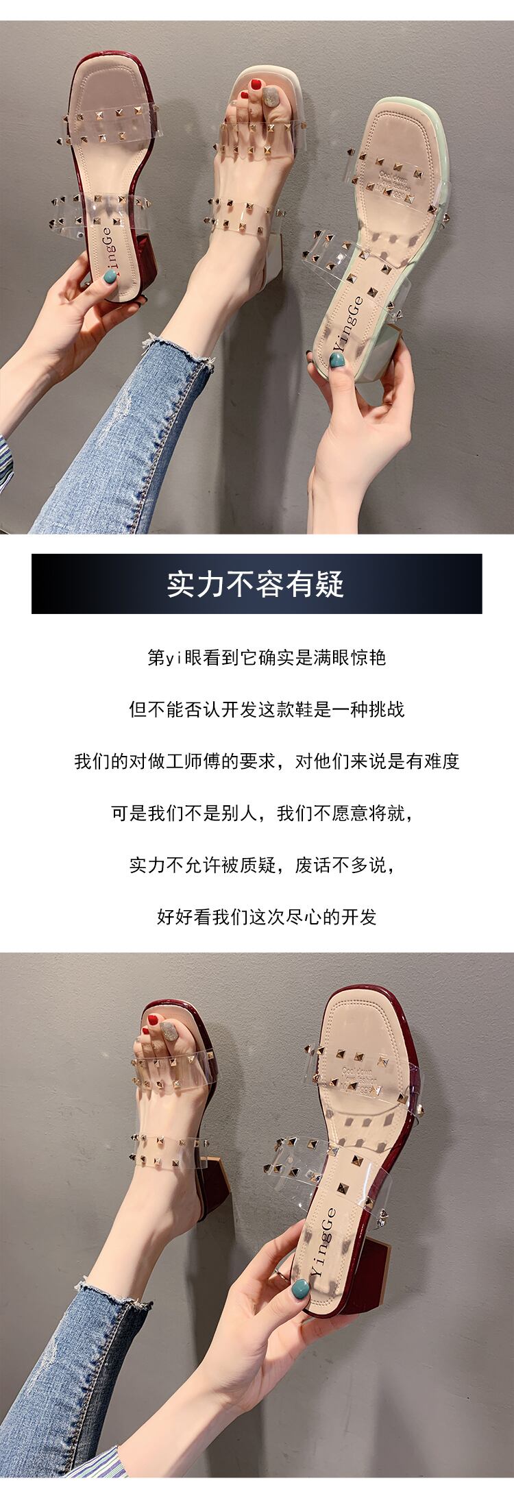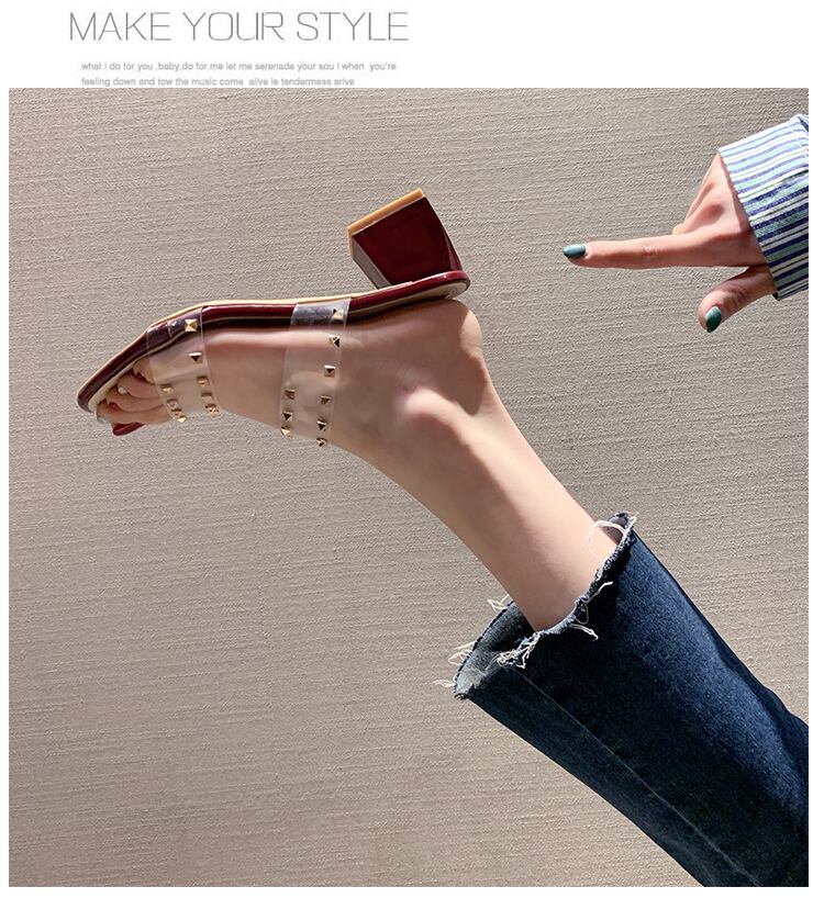 純赤いスリッパ女性は透明な単語のドラッグで厚くハイヒールのサンダルで野生の2020年夏の新しいバージョンを着用します 部族の婦人靴9592434