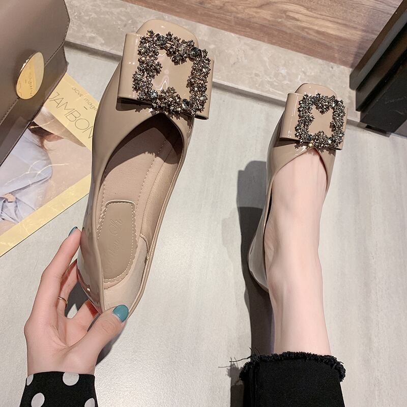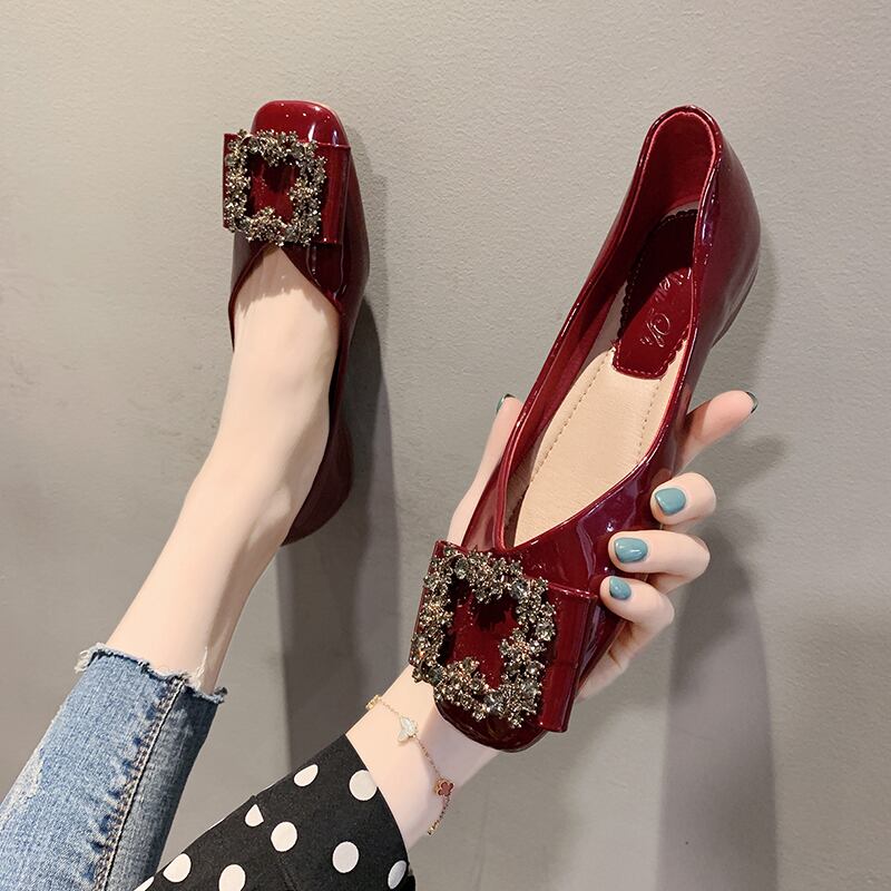 フラットボトムシューズレディース2020春新しいinsバージョンワイルドスクエアヘッドネットレッド浅い口フェアリースタイルピースシューズレディース 部族の婦人靴5388076
